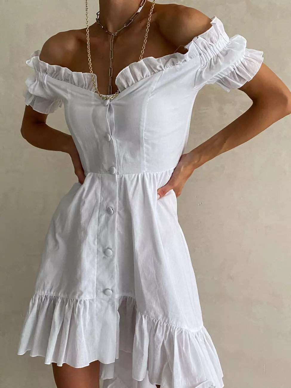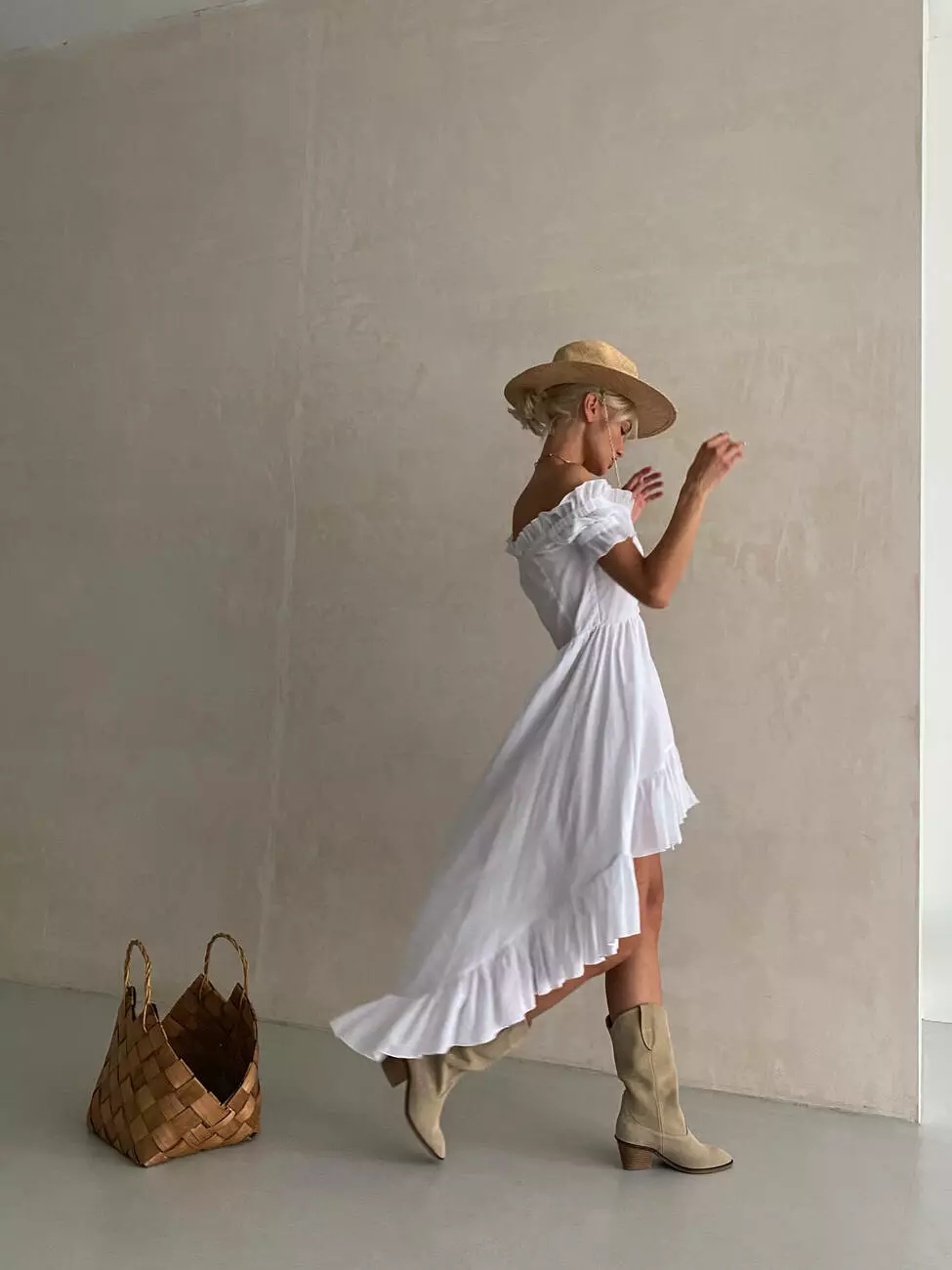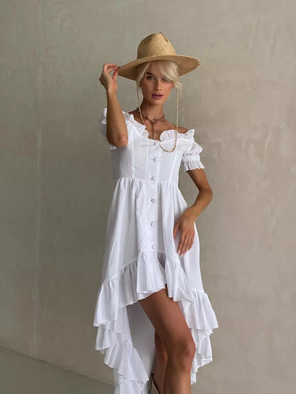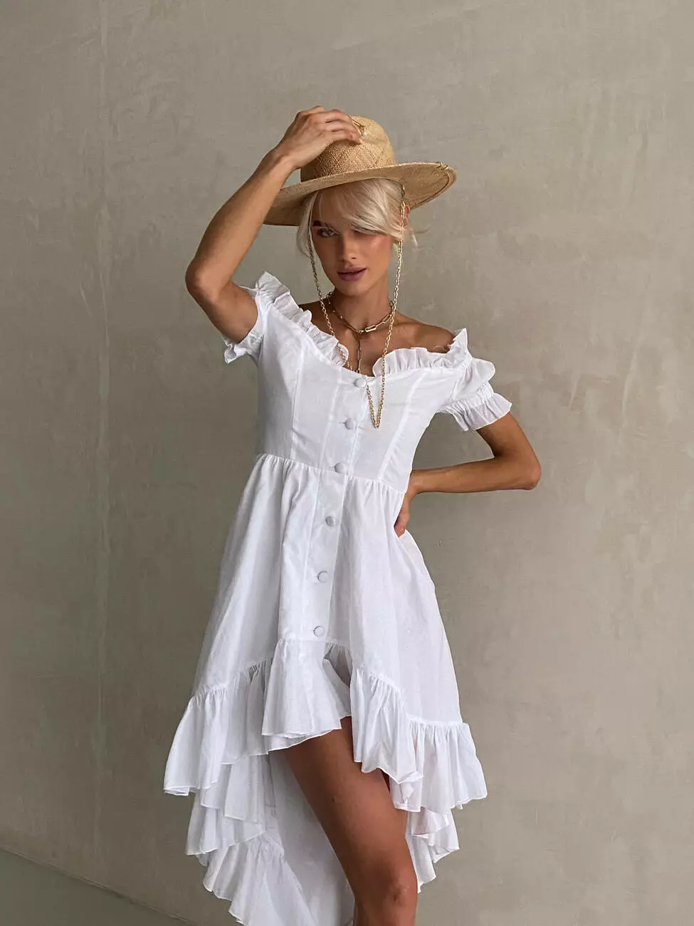 Бавовняна ніжна сукня MIRANDA з відкритими плечима білого кольору