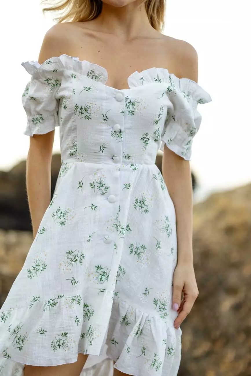 Ніжна сукня MIRANDA в романтичному стилі з відкритими плечима з легкої бавовни, що робить акцент на ніжках, максимально підкреслюючи жіночність.