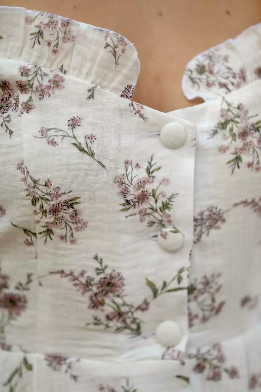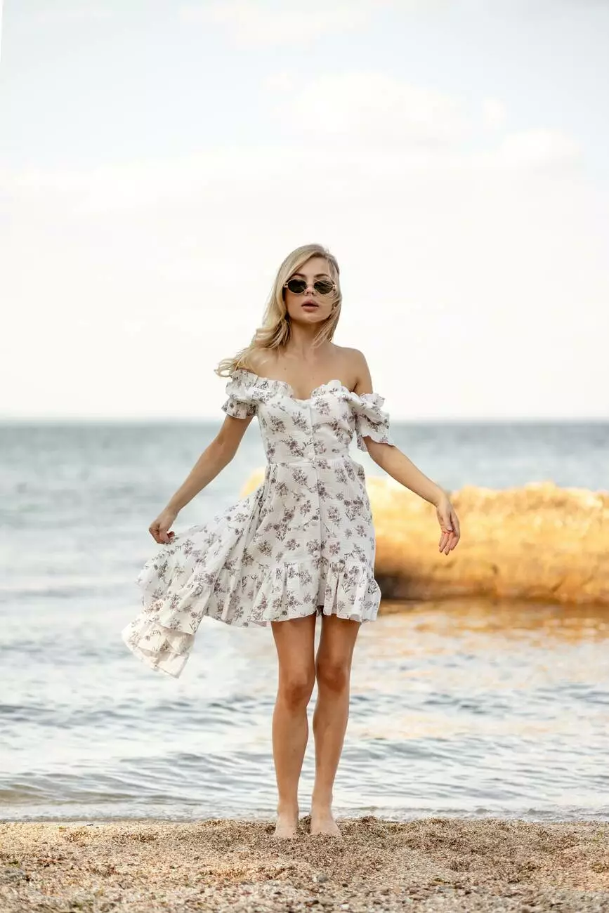 Ніжна сукня MIRANDA в романтичному стилі з відкритими плечима з легкої бавовни, що робить акцент на ніжках, максимально підкреслюючи жіночність.
