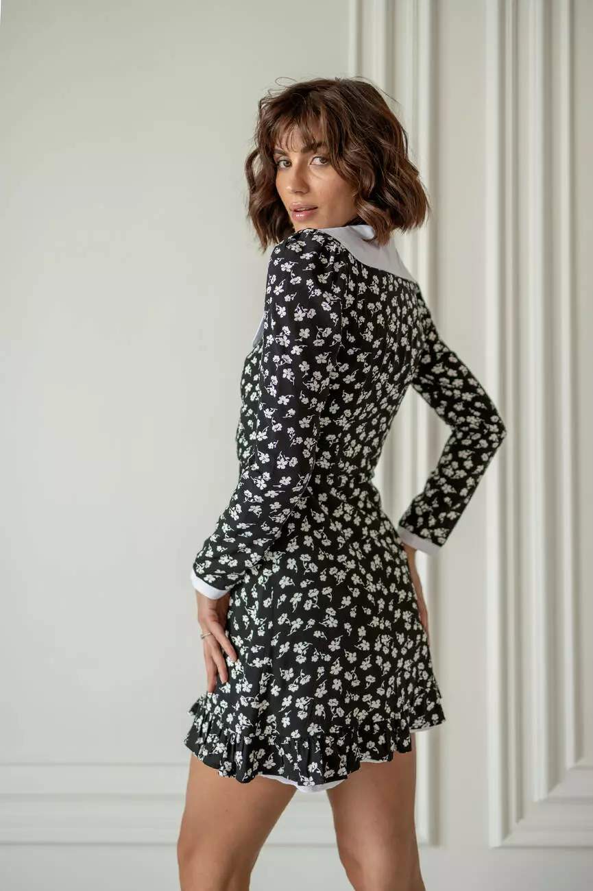 Чарівна жіноча сукня EMMA довжини міні у квітковий принт з білим комірцем чорного кольору