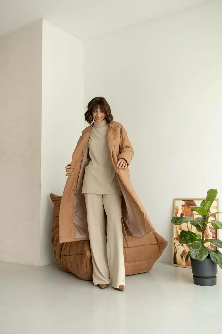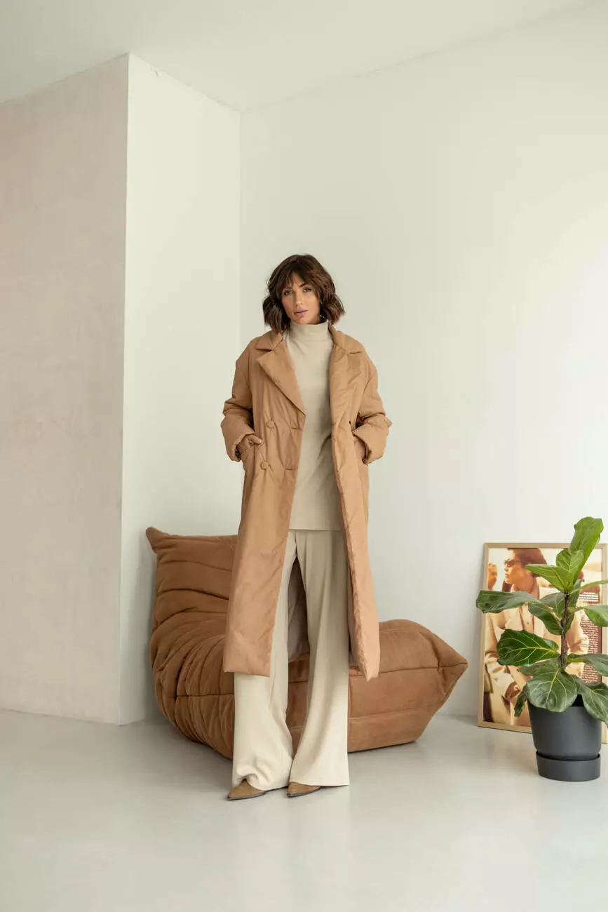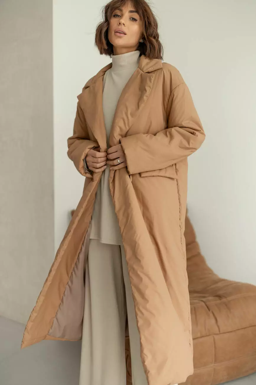 Відшивається на тонкому утеплювачі, який ефективно зігріває і при цьому надає трендового об'єму, пальто легке та тепле, практично невагоме.