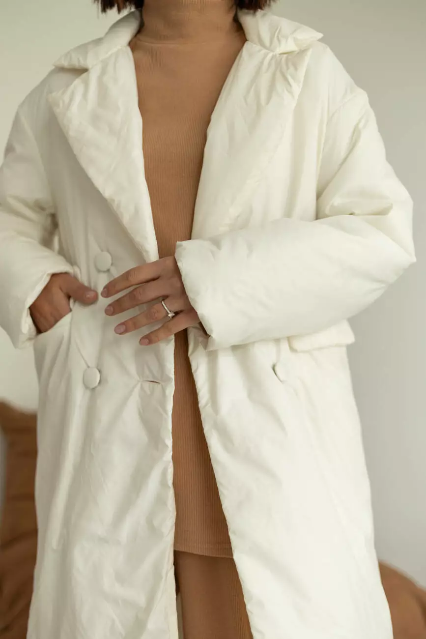 Відшивається на тонкому утеплювачі, який ефективно зігріває і при цьому надає трендового об'єму, пальто легке та тепле, практично невагоме.
