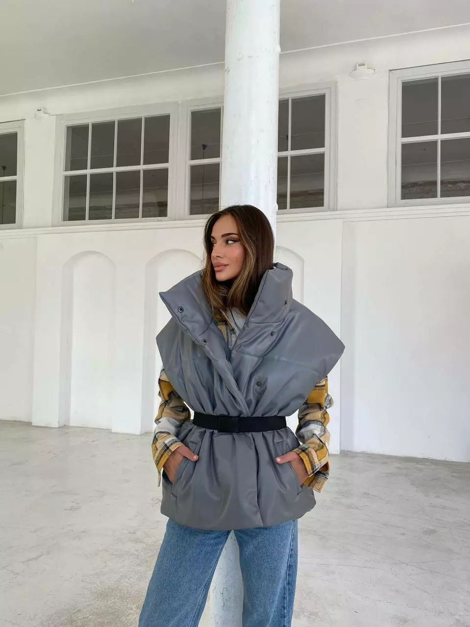 Демісезонний трендовий жилет Desing з екошкіри утеплювач силікон 200 сірого кольору