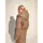 Довга жіноча зимова куртка - пуховик ZEFIR з екошкіри класу Lux на силіконі 200 з капюшоном бежевого кольору