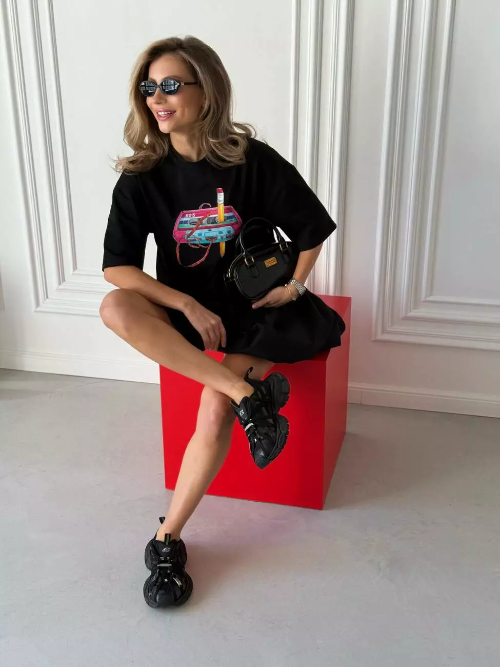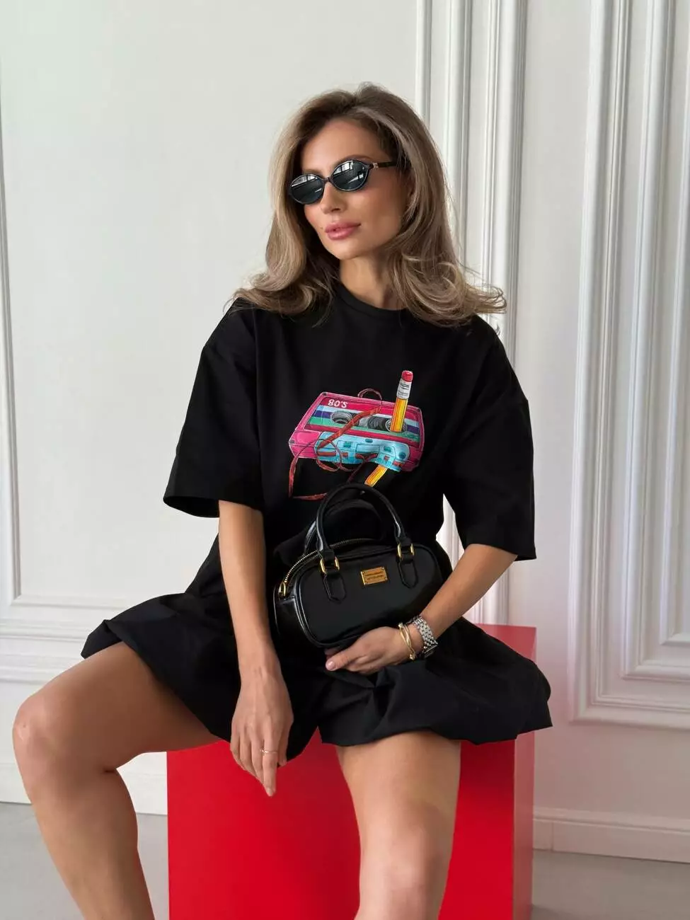 Широка футболка формат “over size” зі стильним принтом у вигляді касети.