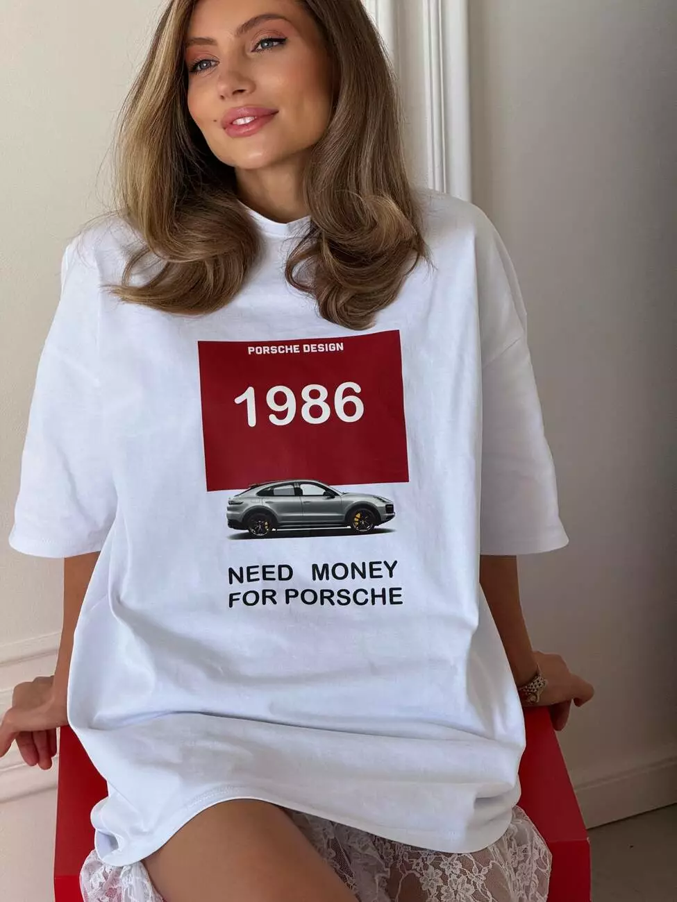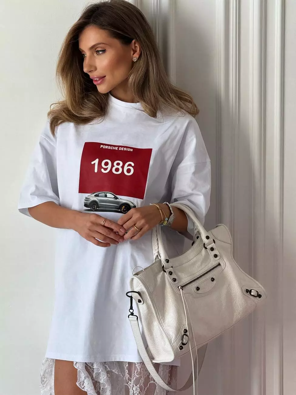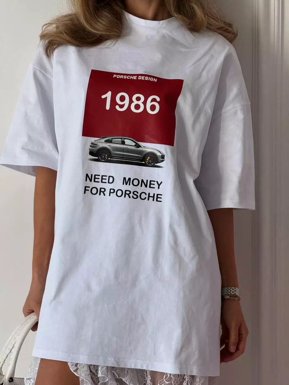 Широка футболка формат “over size” зі стильним принтом у вигляді порше.
