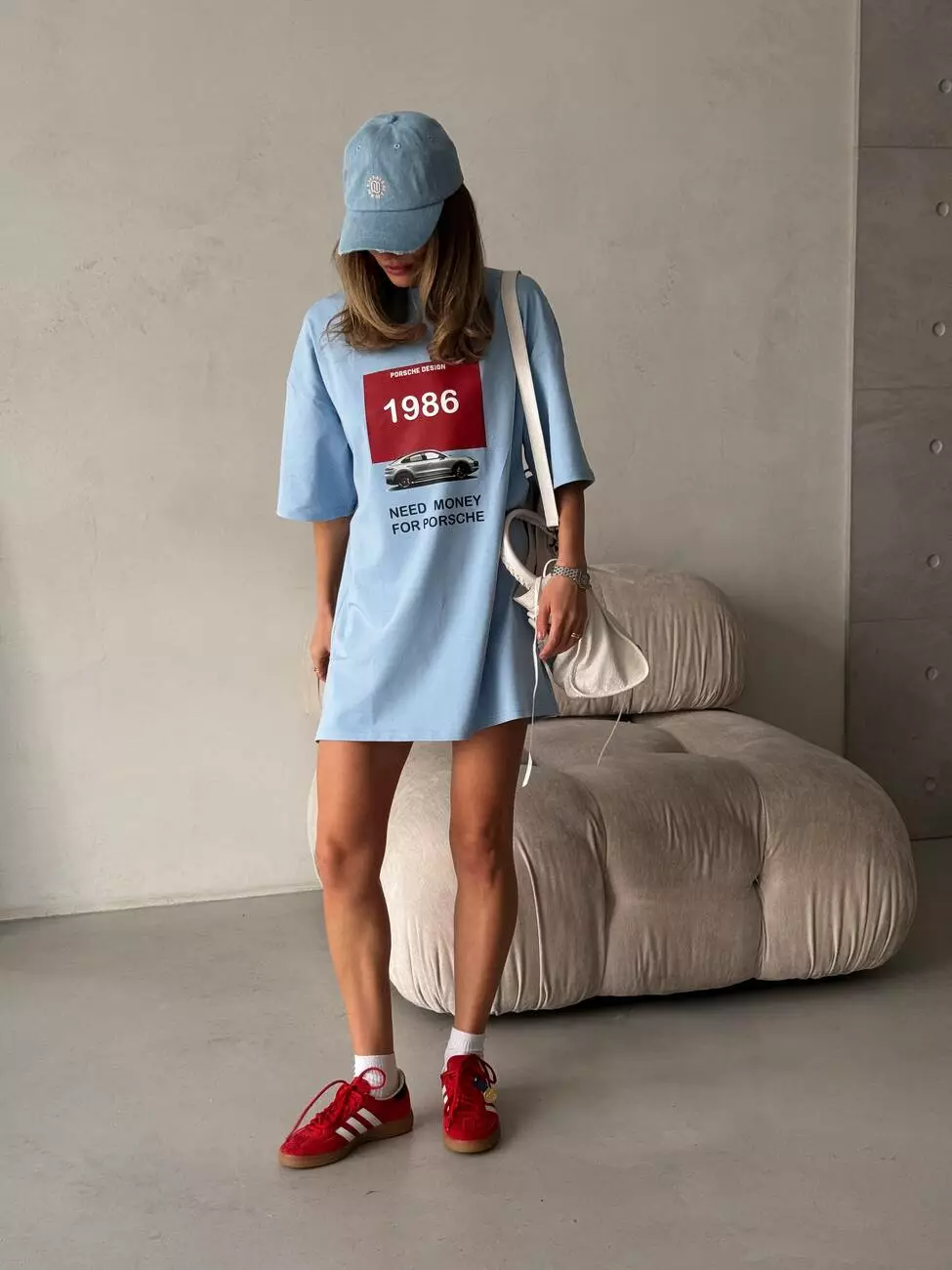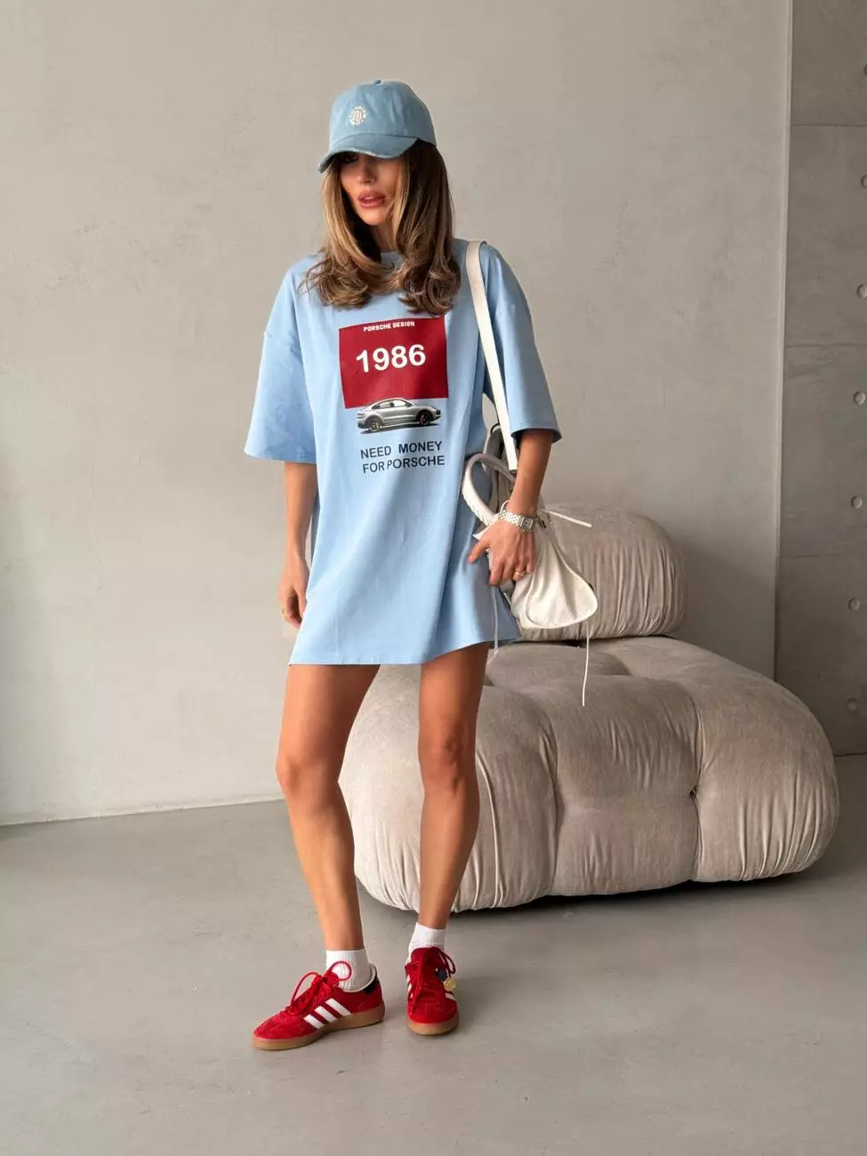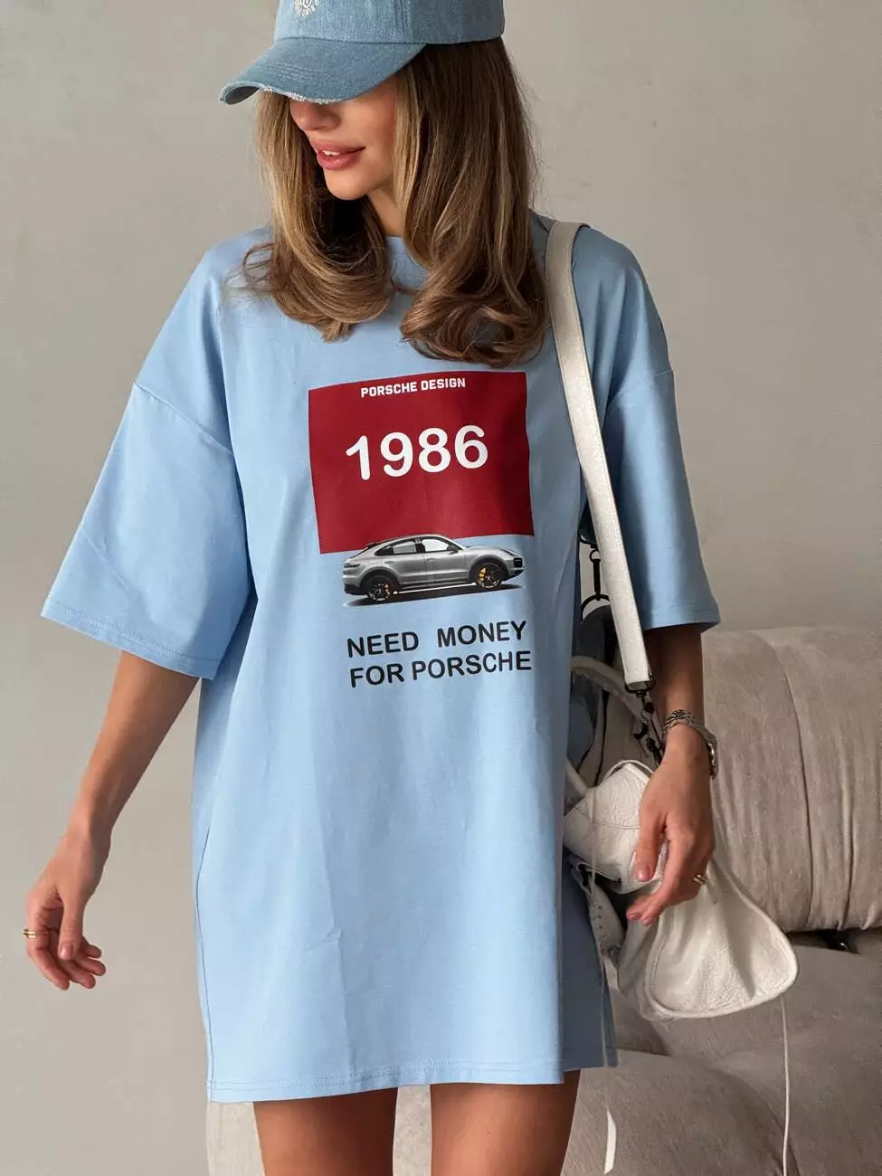 Широка футболка формат “over size” зі стильним принтом у вигляді порше.