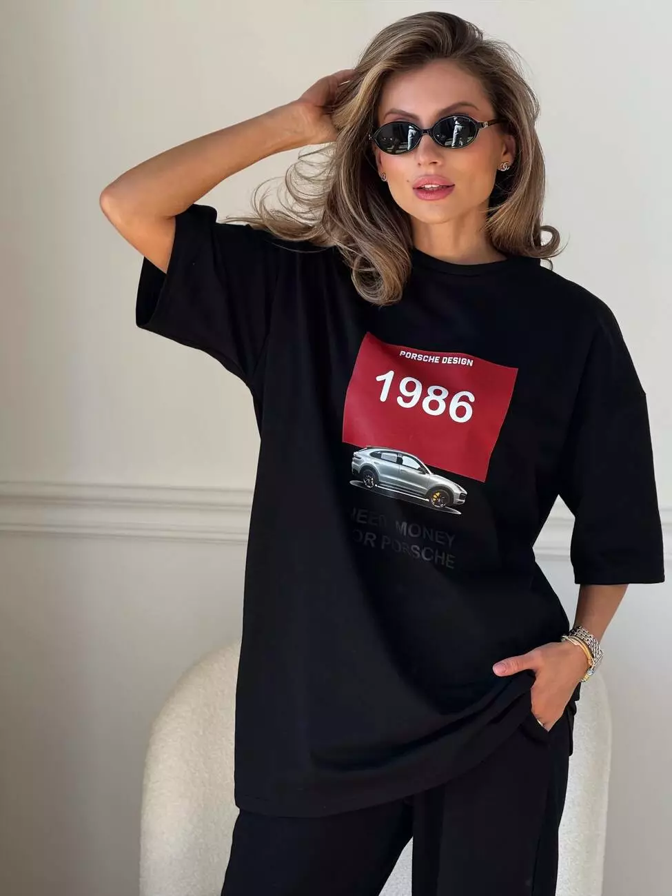 Широка футболка формат “over size” зі стильним принтом у вигляді порше.