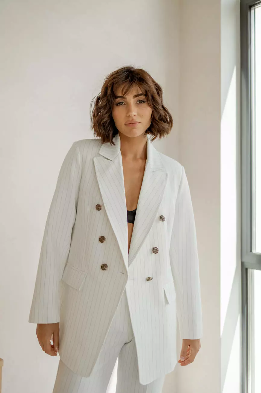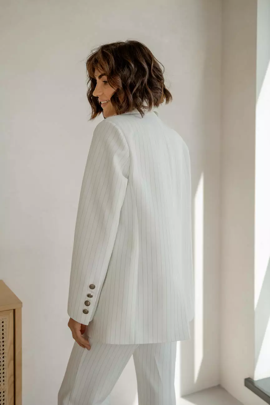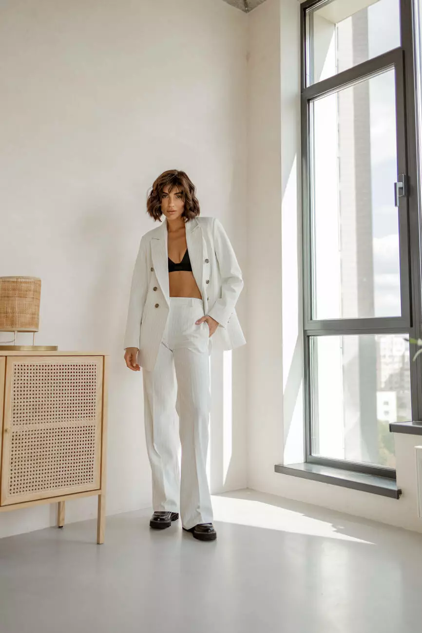 Класичний брючний костюм RICCO з костюмної тканини колір білий в смугу