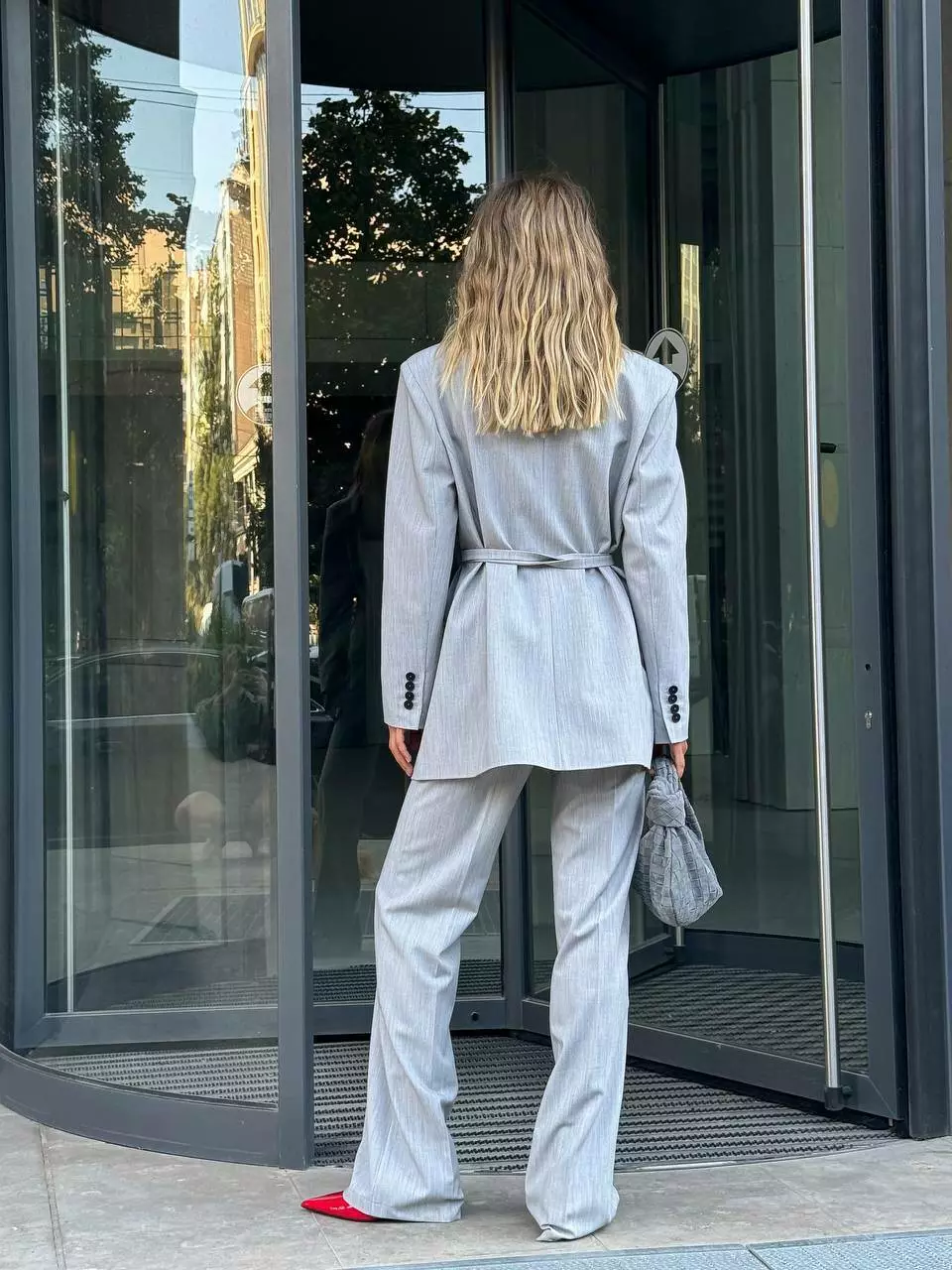 Стильний класичний костюм, під пояс Піджак з чоловічого плеча, прямого крою Брюки прямого крою, на трохи заниженій посадці. Пояс шнурок в комплекті. Тканина : преміальна костюмка