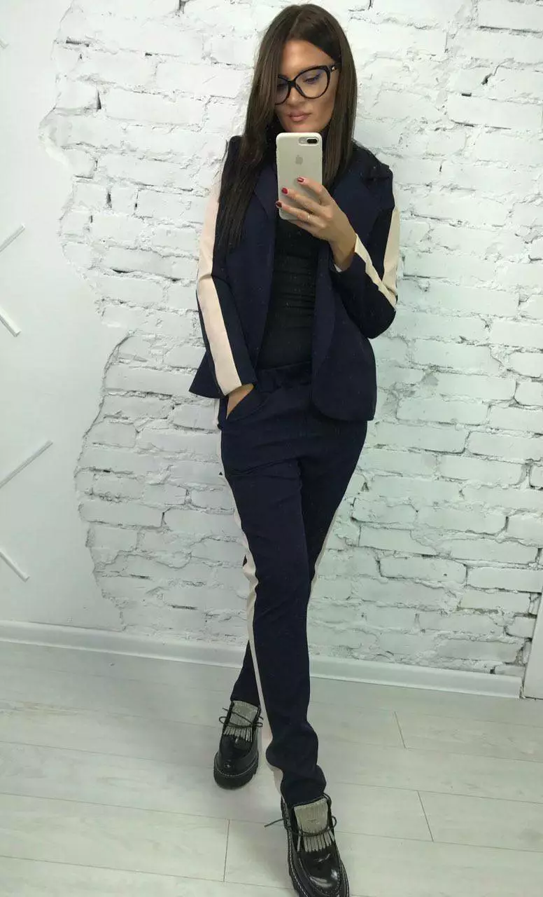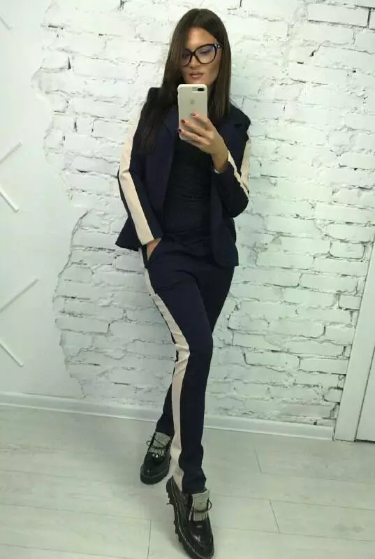 Костюм класика з лампасами колір синій-беж