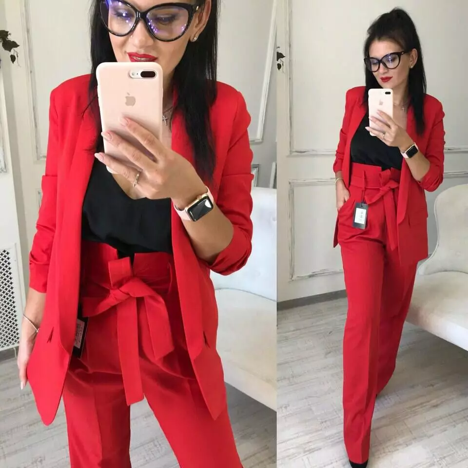 Стильний класичний костюм з тендовими штанами-трубами високої посадки та дуже ефектним піджаком з рукавами 3/4