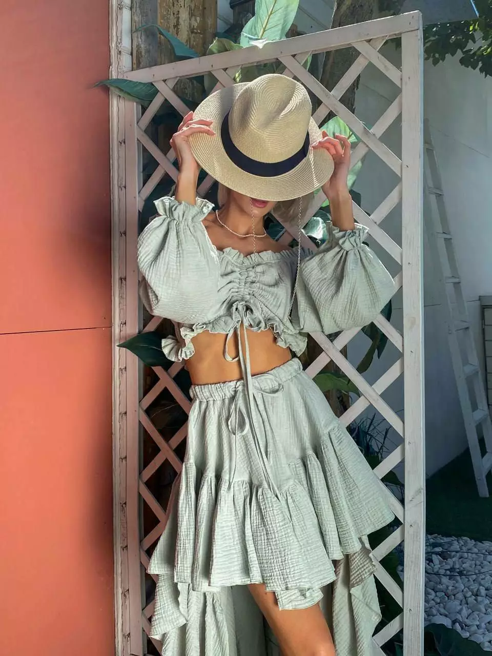 Спідниця – талія регулюється зав'язкою.