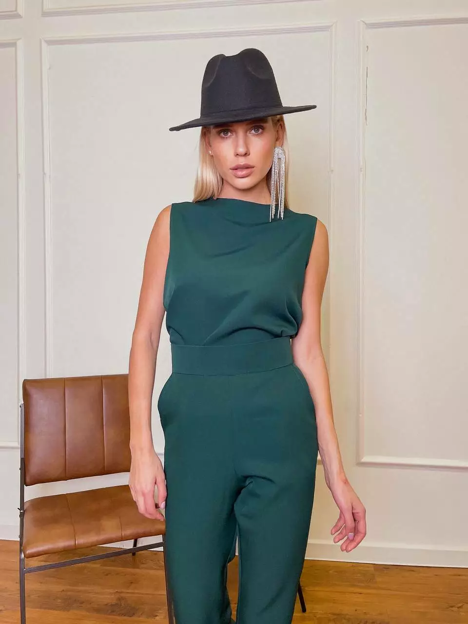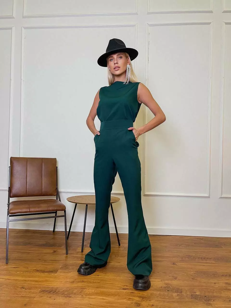 Однотонний комплект LOLA - це ідеальний варіант для стильного та модного вигляду Мінімалістичний та оригінальний костюм складається із топа, який має ідеальну посадку по грудях та вільний в талії, без кишень та застібок Штани мають високу посадку, яка ідеально підкреслить фігуру та клеш від коліна, бічні робочі кишені, застібаються штани на потайну блискавку позаду.