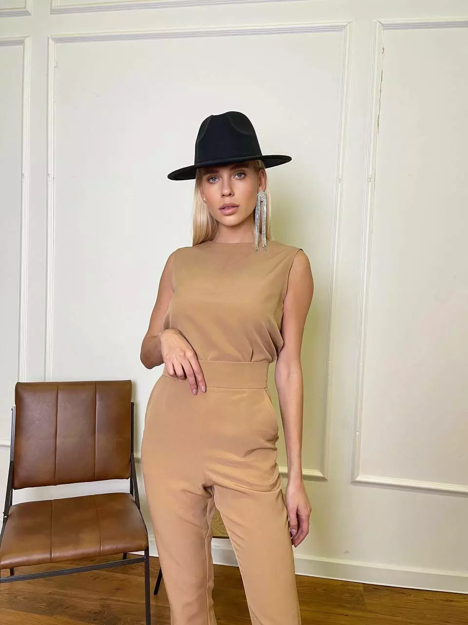Однотонний комплект LOLA - це ідеальний варіант для стильного та модного вигляду Мінімалістичний та оригінальний костюм складається із топа, який має ідеальну посадку по грудях та вільний в талії, без кишень та застібок Штани мають високу посадку, яка ідеально підкреслить фігуру та клеш від коліна, бічні робочі кишені, застібаються штани на потайну блискавку позаду.