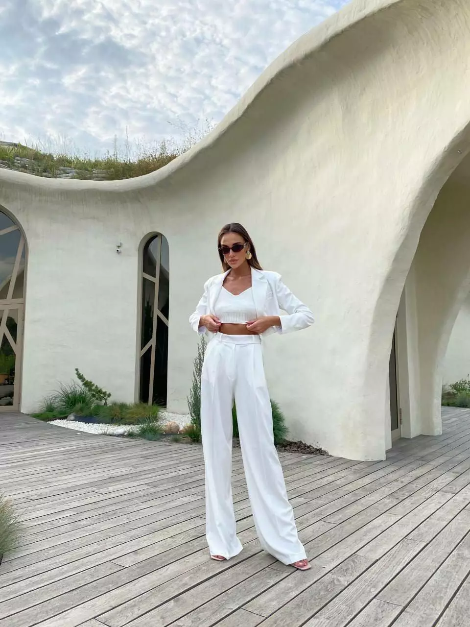 У люксовому виконанні Кроп-жакет двобортний та штани палаццо