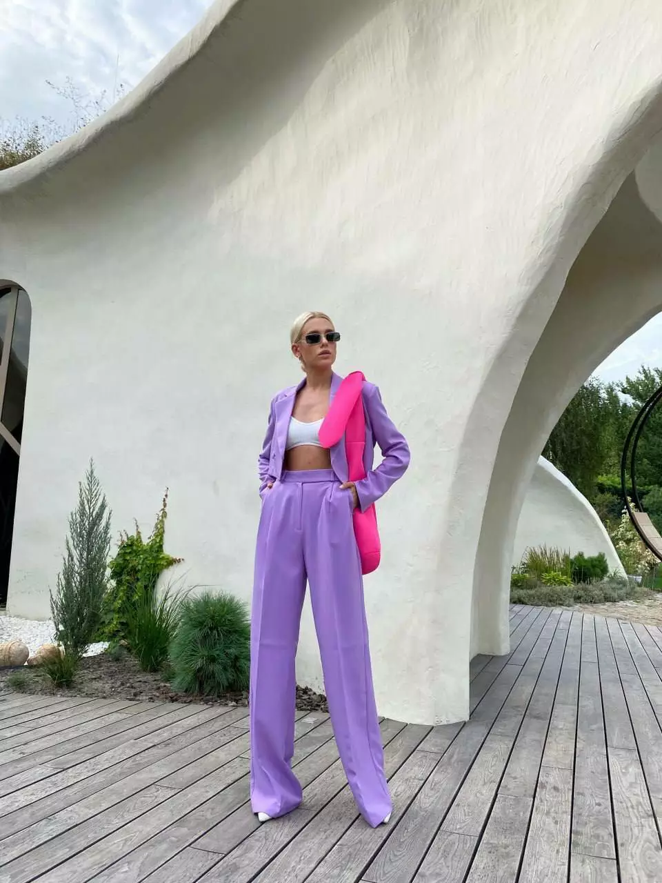 У люксовому виконанні Кроп-жакет двобортний та штани палаццо