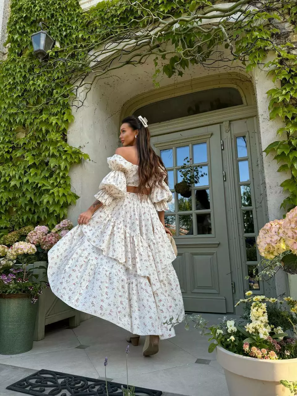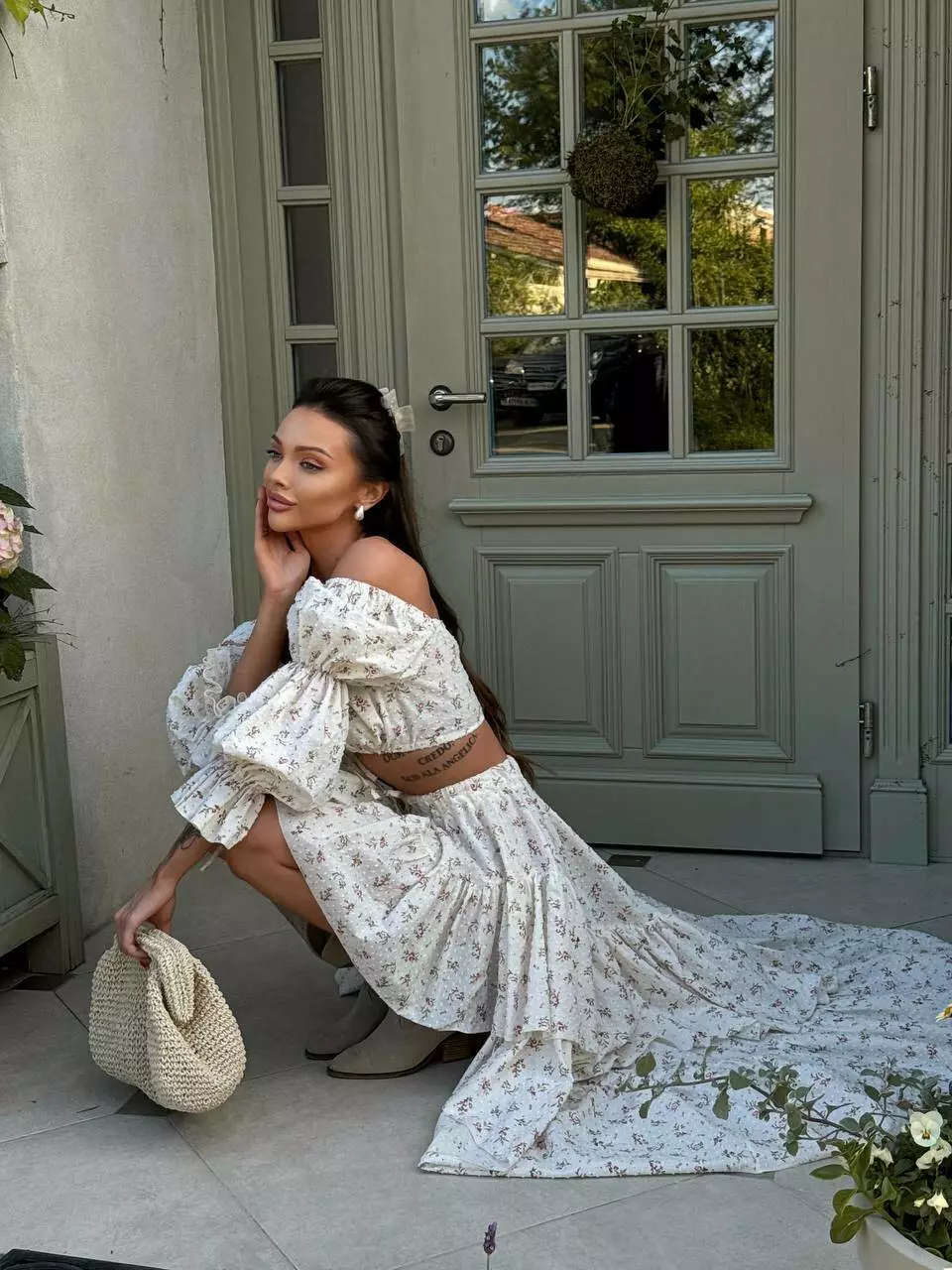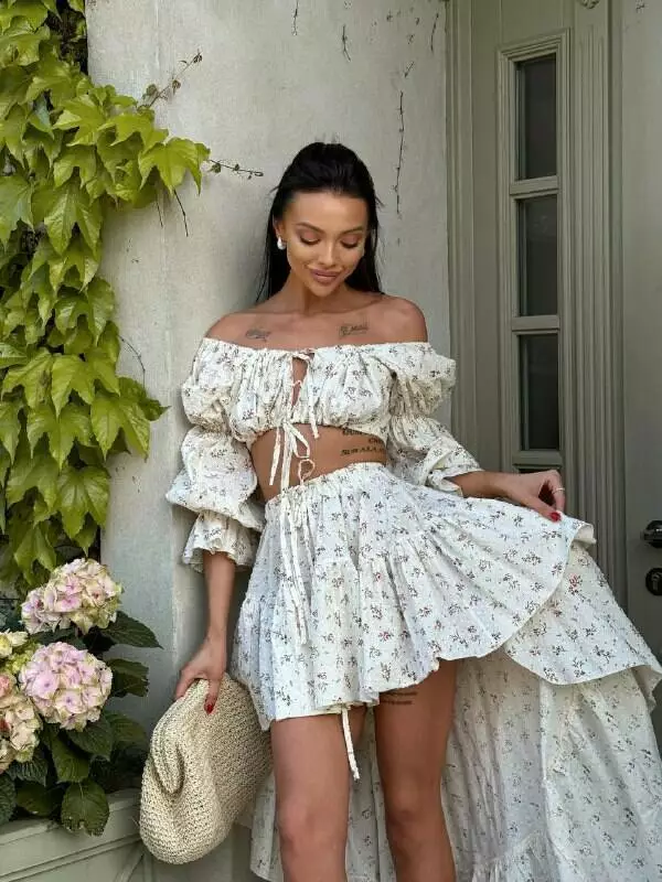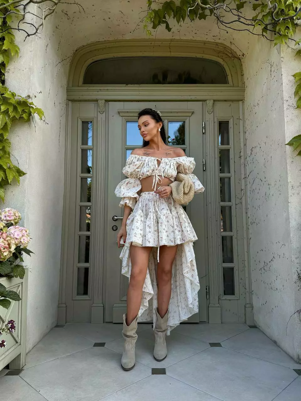 Ліф-топ та спідниця з коротким передом та максі позаду Універсального розміру, топ регулюється завʼязками Талія спідниці на гумці та теж на регуляторі