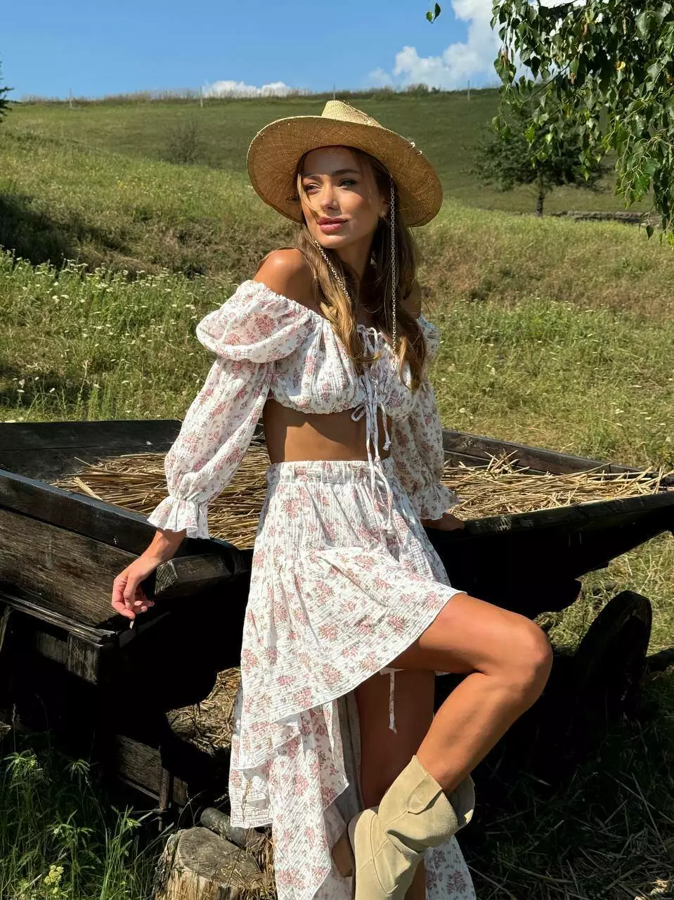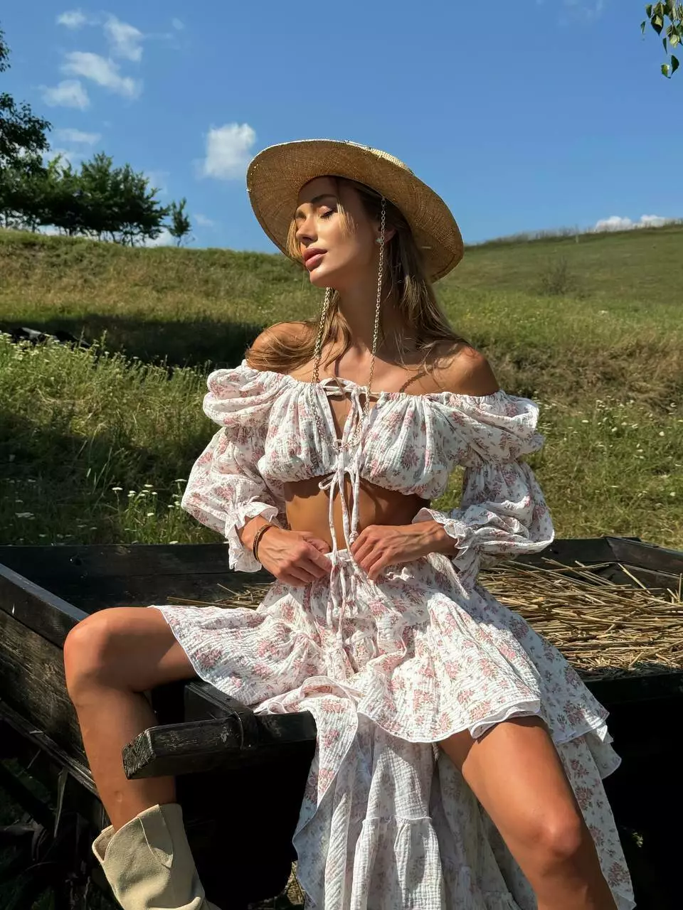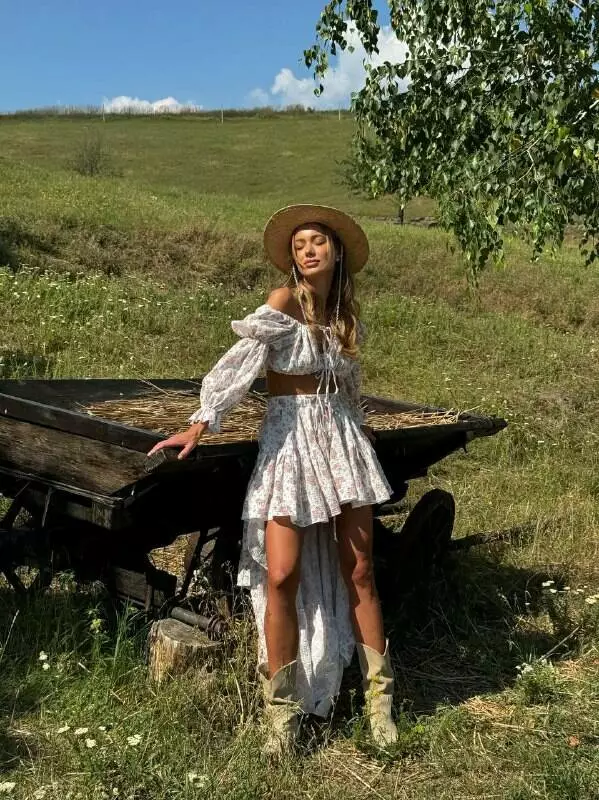 Ліф-топ та спідниця з коротким передом та максі позаду Універсального розміру, топ регулюється завʼязками Талія спідниці на гумці та теж на регуляторі