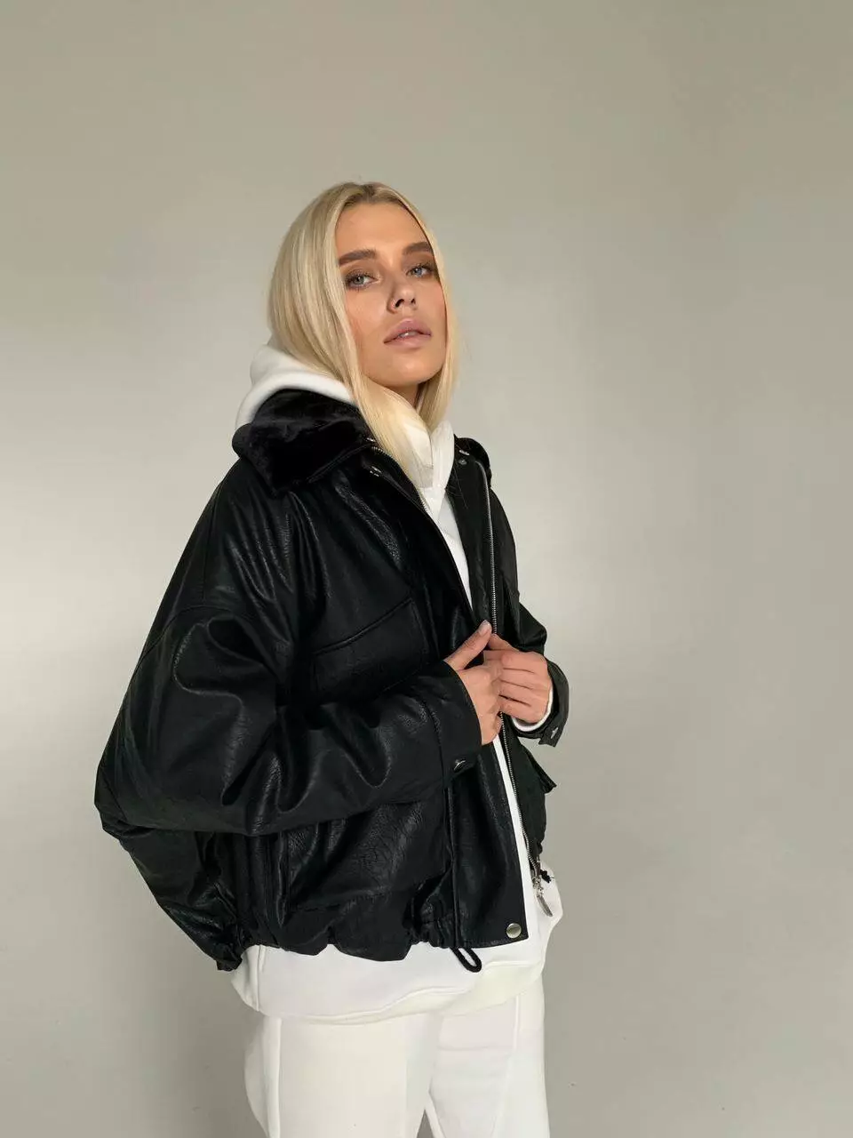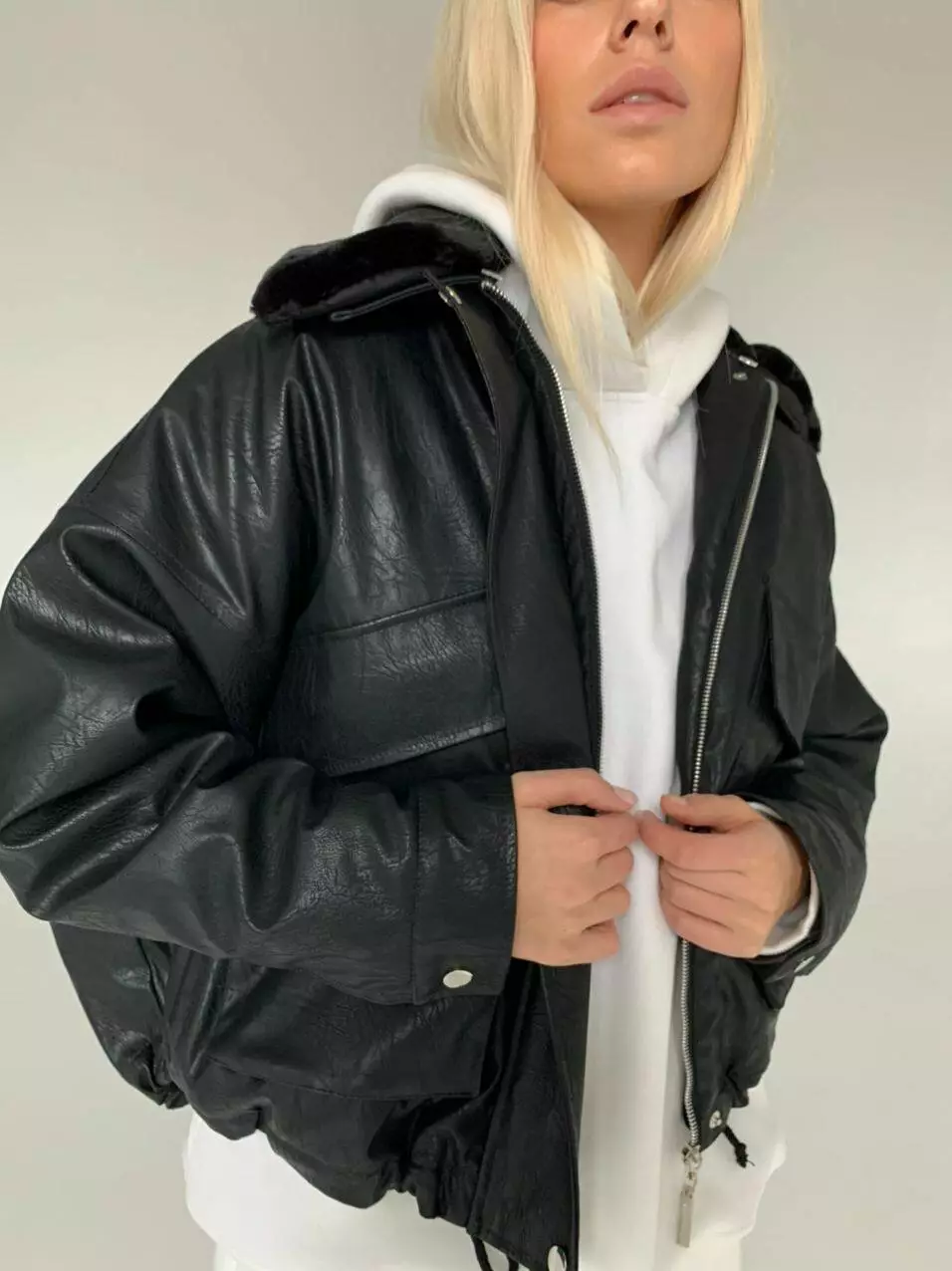 Стильна куртка кажан виконана з екошкіри та утеплена slimtex 200 - це універсальний предмет верхнього одягу Фасон цієї моделі ефектний, з одного боку, надає образу грубості, а з іншого підкреслює стиль, має 2 накладні кишені, пояс на кулісці, хутряний комір знімний