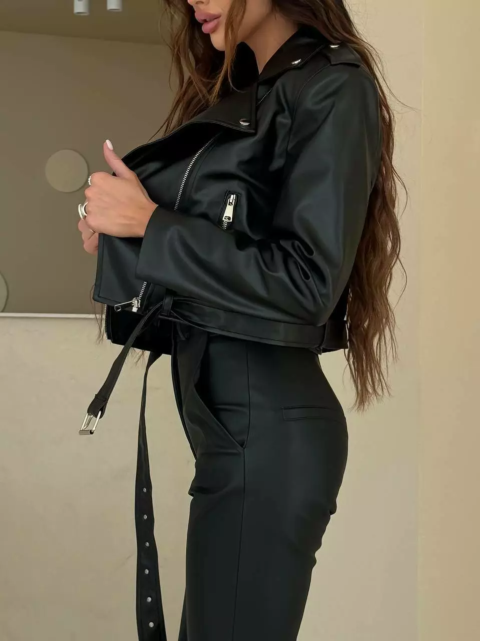 Стильна, трендова, укорочена косуха з еко-шкіри ЛЮКС якості Діючі кармани, змійки метал кольору нікель.