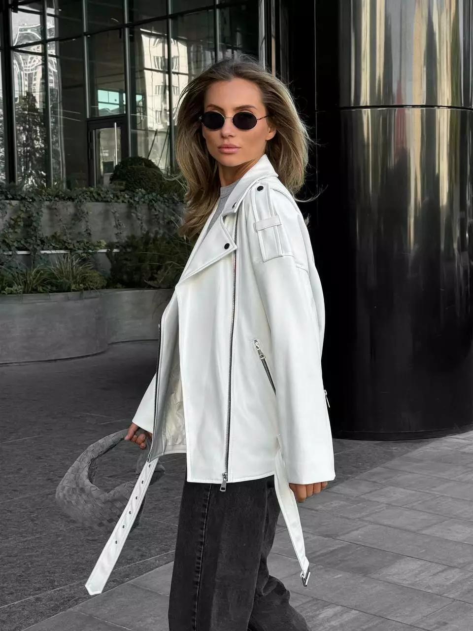 Оверсайз подовжена куртка, виконана з люксової екошкіри та дуже якісного пошиття Металева фурнітура, всі робочі кишені, пояс в колір виробу йде у комплекті