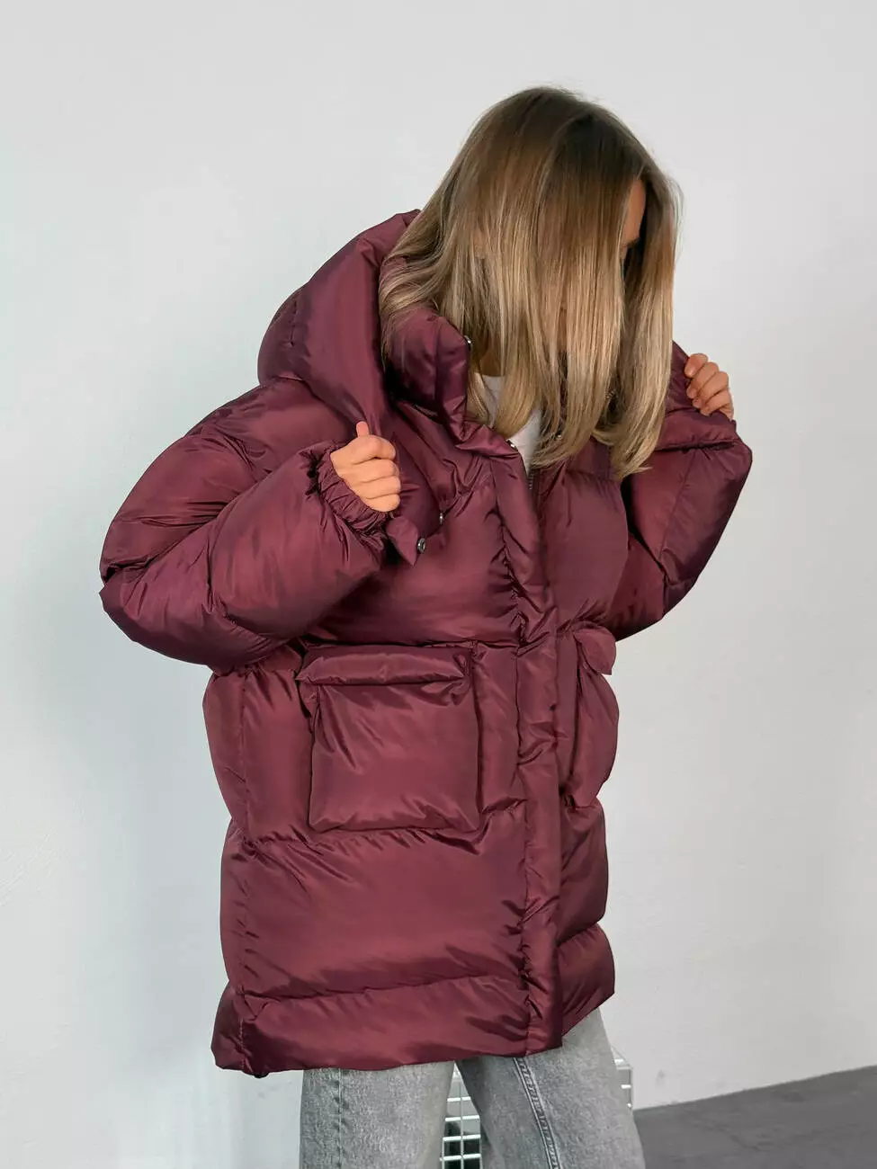 Куртка -пуховик BEZE LONG колір бургунді