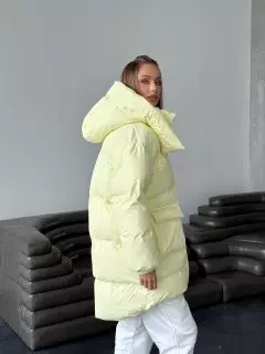 Зимовий подовжений пуховик, виконаний з плащівки на мембрані, що є непродувною і водонепроникаючою. Капюшон знімається