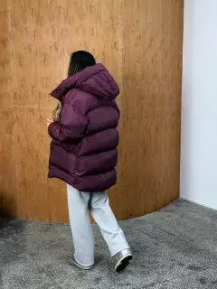 Зимовий подовжений пуховик, виконаний з плащівки на мембрані, що є непродувною і водонепроникаючою. Капюшон знімається