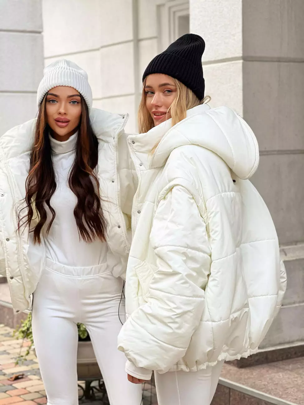 Куртка-Жилетка HANDS OFF Зима з плащівки на силіконі 200 з капюшоном колір молоко