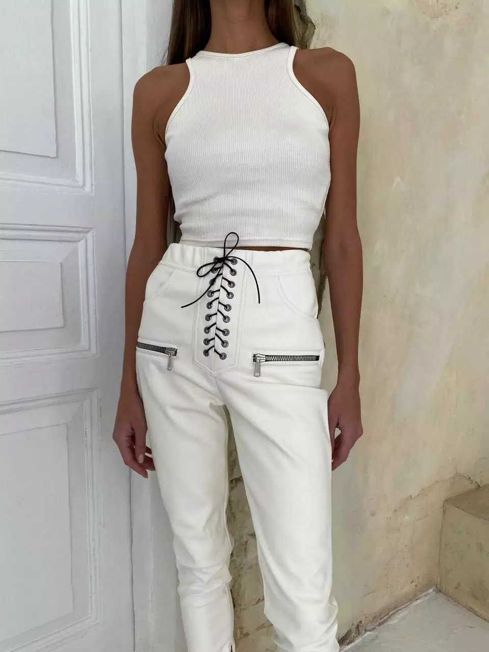 Лосини NIKKY LUX з екошкіри на замшевій основі - практичні, еластичні, зручні та завжди додають в образ вишуканості. Модель має комфортну посадку, акцентну шнурівку спереду та змійки з внутрішнього шва та вгорі з боків.