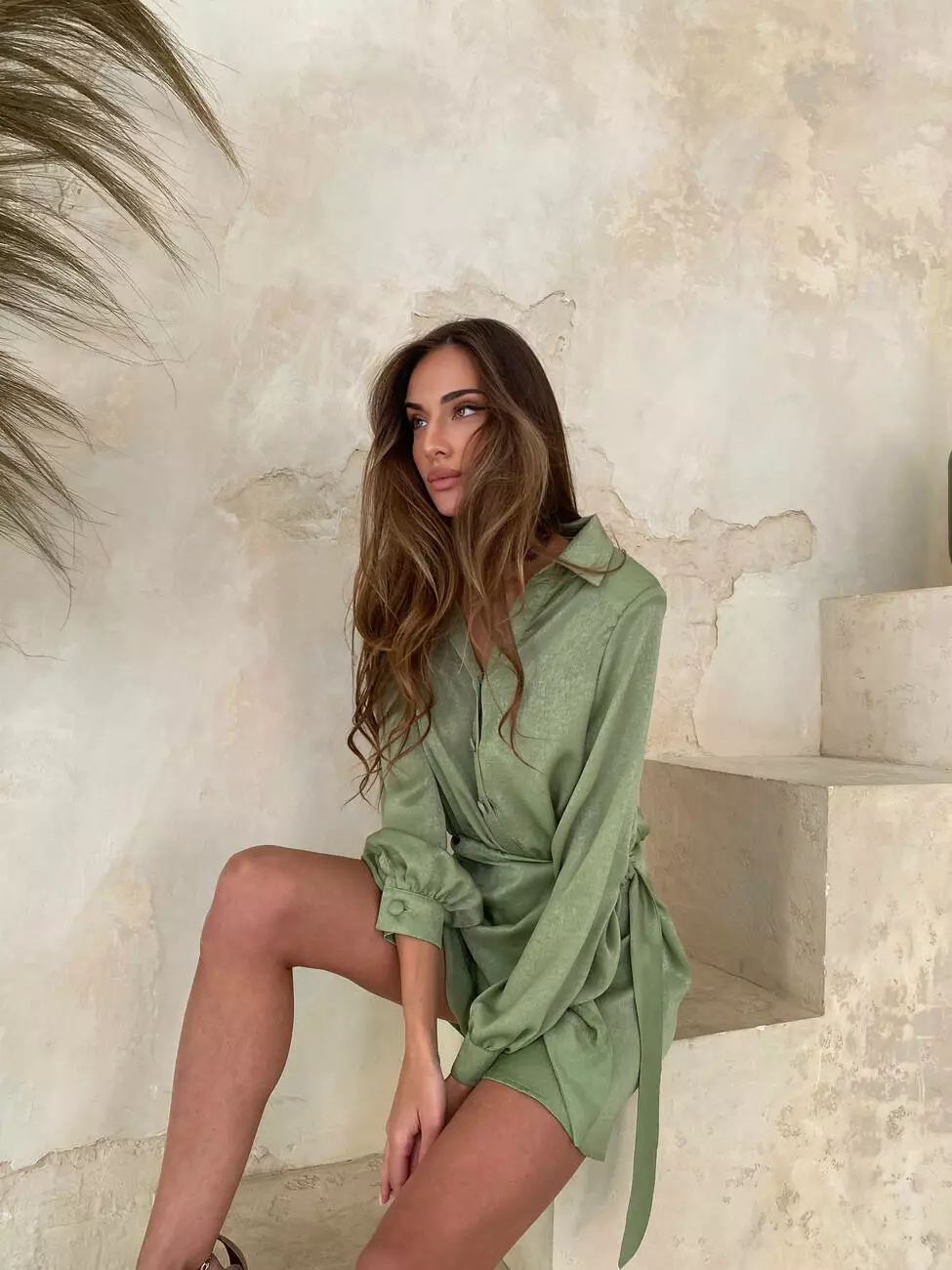 Ніжна сукня Stella сорочкового стилю з поліестера колір лайм