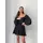 Модель має виріз горловини, що спадає з плеча, рукава довгі та об'ємні, з гумкою на кінцях, їх можна опускати на плечі або носити піднятими.