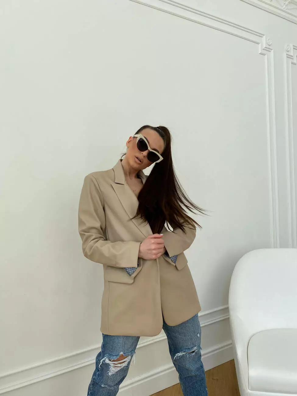 Однотонний жіночий піджак Sakura з екошкіри LUX якості бежевого кольору