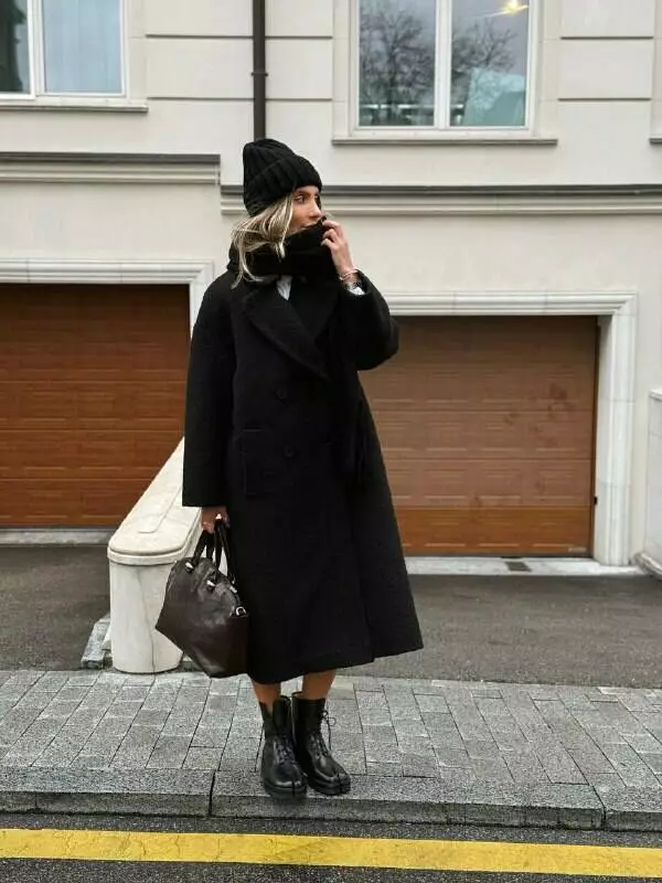 Стильне пальто оверсайз прямого крою зі спущеними плечима