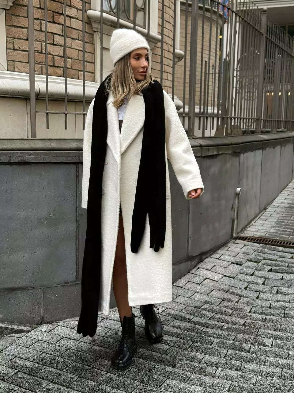Стильне пальто оверсайз прямого крою зі спущеними плечима