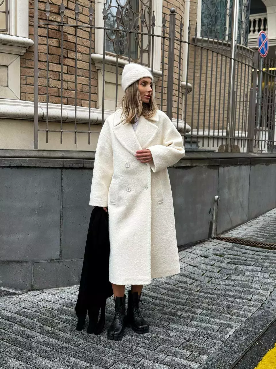 Пальто КЛАСИКА УТЕПЛЕНЕ БУКЛЕ колір молоко