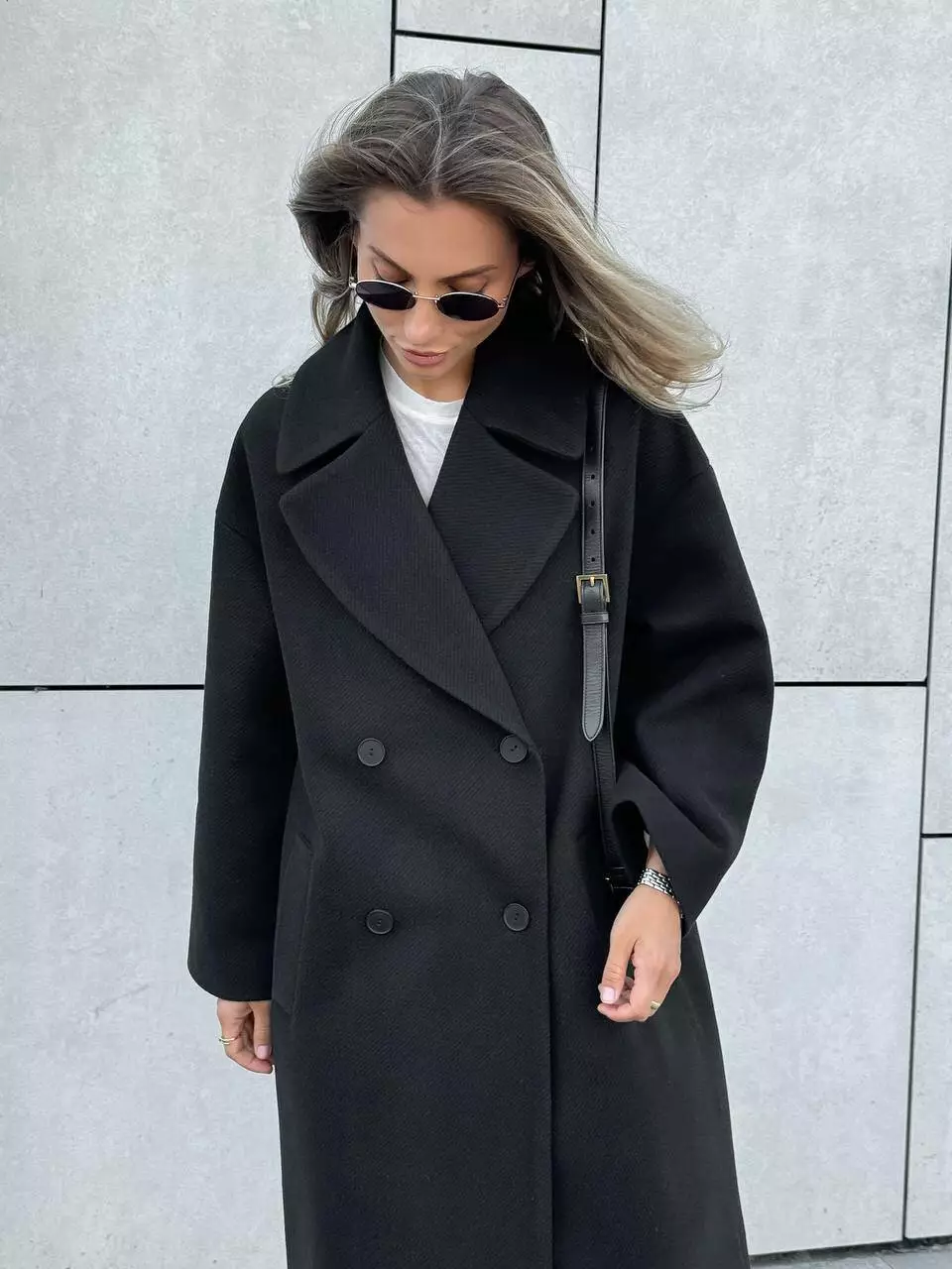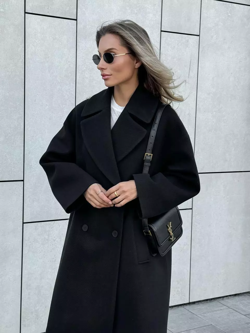 Стильне пальто оверсайз прямого крою зі спущеними плечима