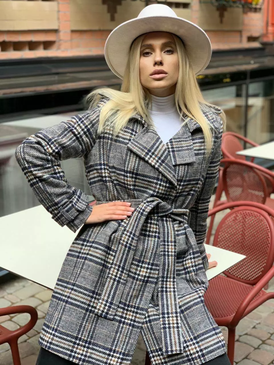 Пальто Paris клітинка синій-беж