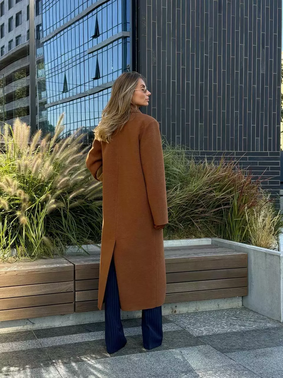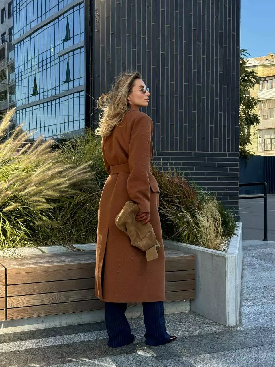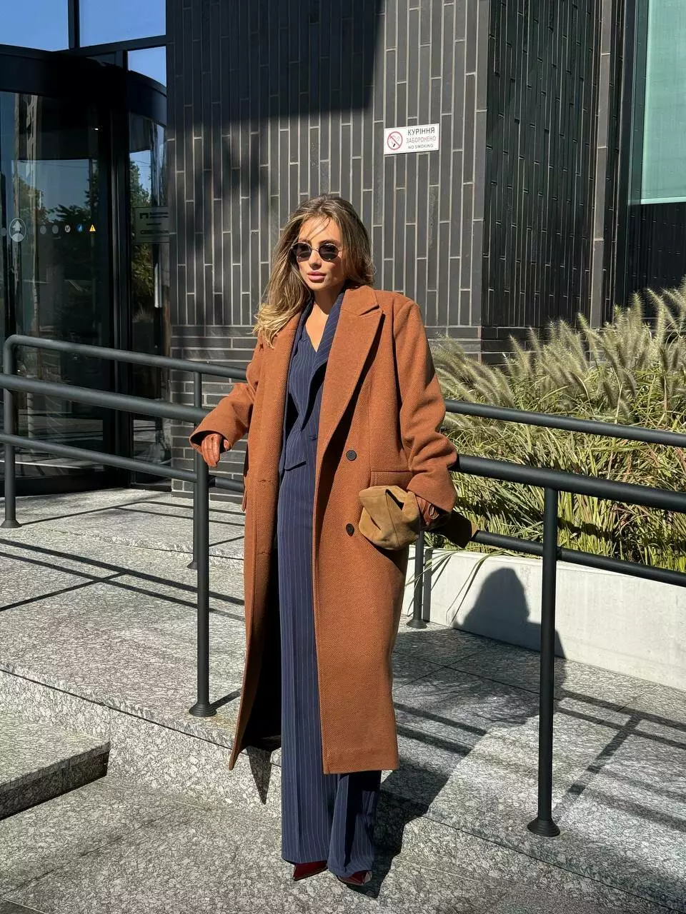 Трендове подовжене двобортне пальто класичного крою з об'ємними плечима Дизайн пальто створений, щоб відчувати себе неймовірно комфортно та впевнено у будь-якій ситуації, 2 діючі кишені та шліца по спинці внизу Застібається на гудзики, пояс в комплекті