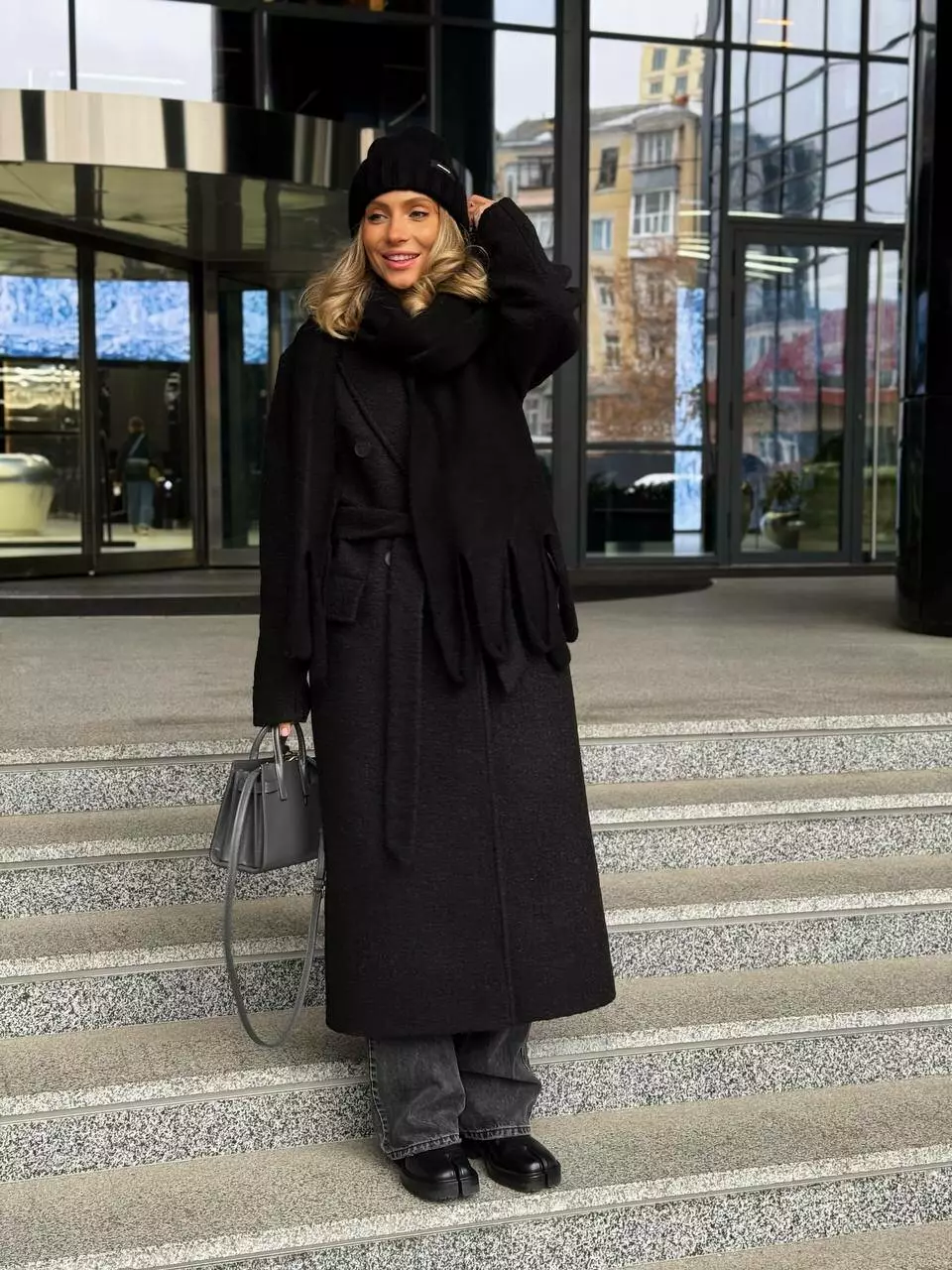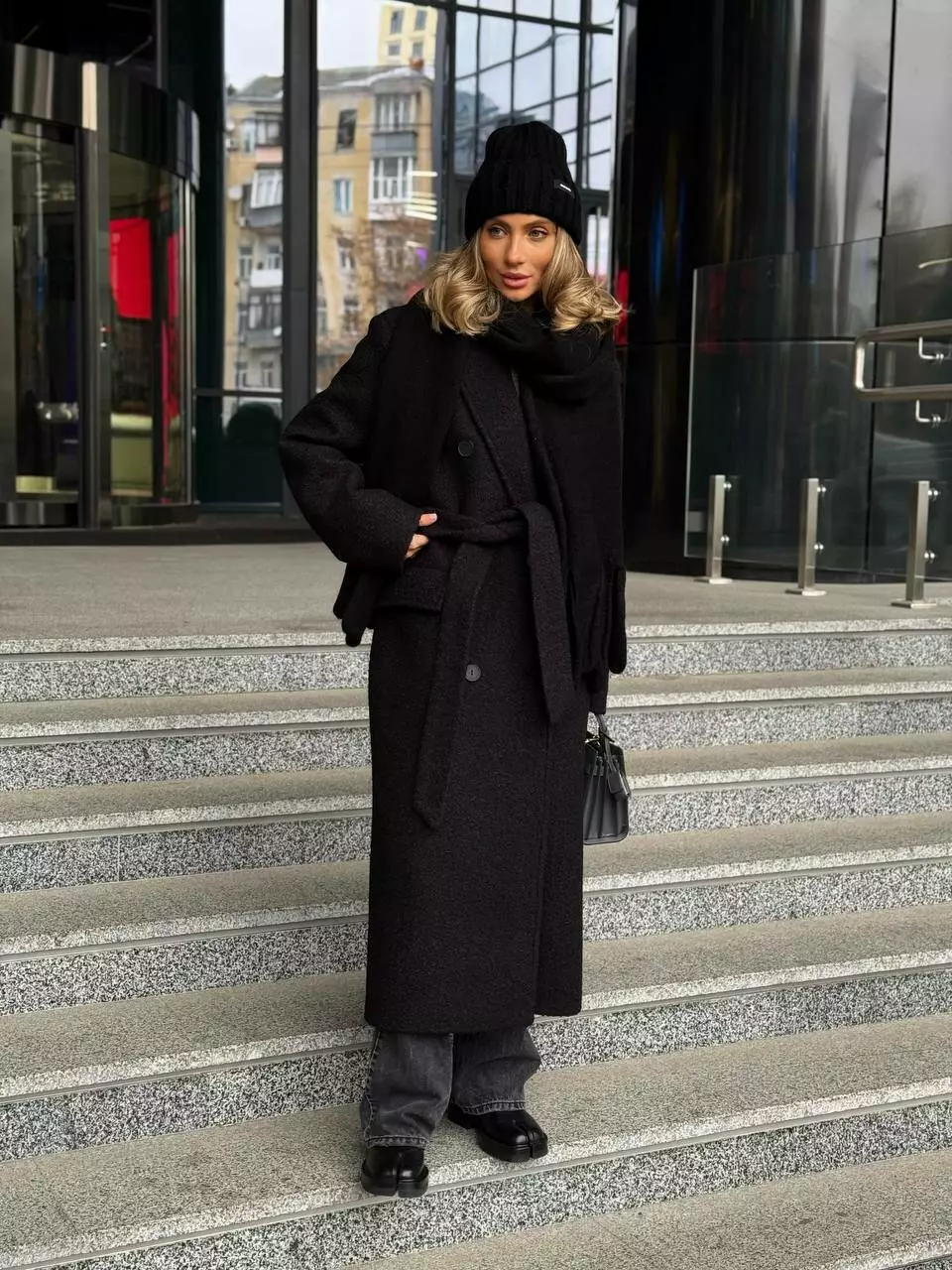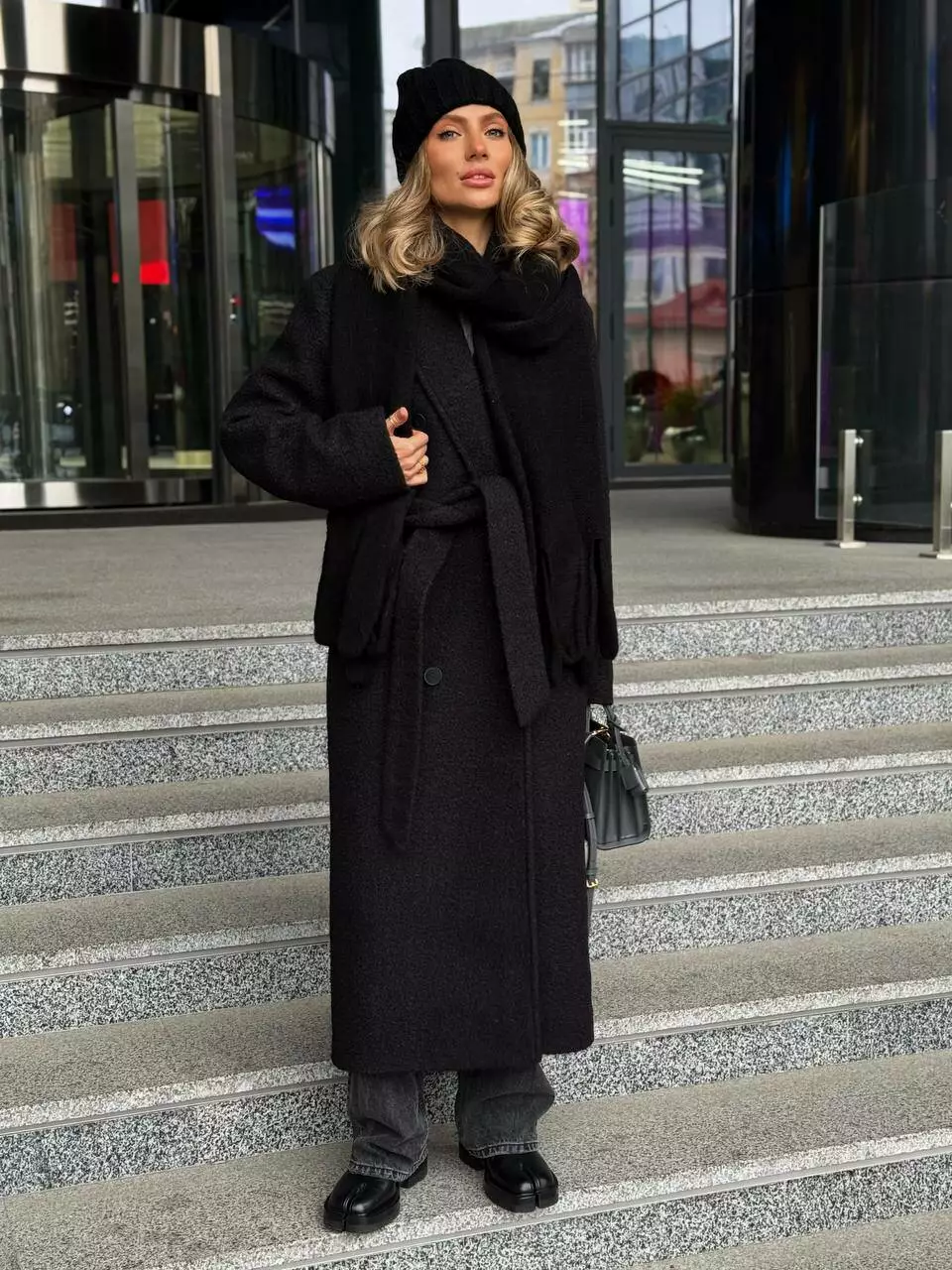 Трендове подовжене двобортне пальто класичного крою з об'ємними плечима Дизайн пальто створений, щоб відчувати себе неймовірно комфортно та впевнено у будь-якій ситуації, 2 діючі кишені та шліца по спинці внизу Застібається на гудзики, пояс в комплекті