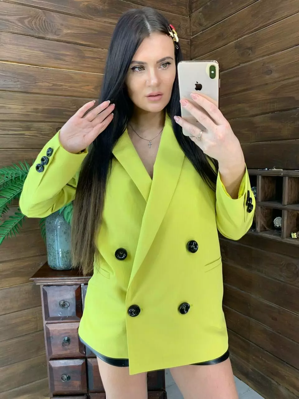 Стильний піджак «з чоловічого плеча», декорований ґудзиками, з 3 кишенями Застібається на 2 гудзики