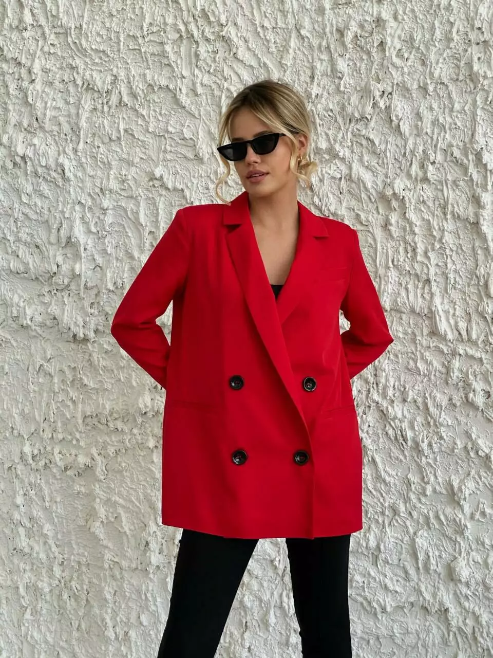 Стильний піджак «з чоловічого плеча», декорований ґудзиками, з 3 кишенями Застібається на 2 гудзики