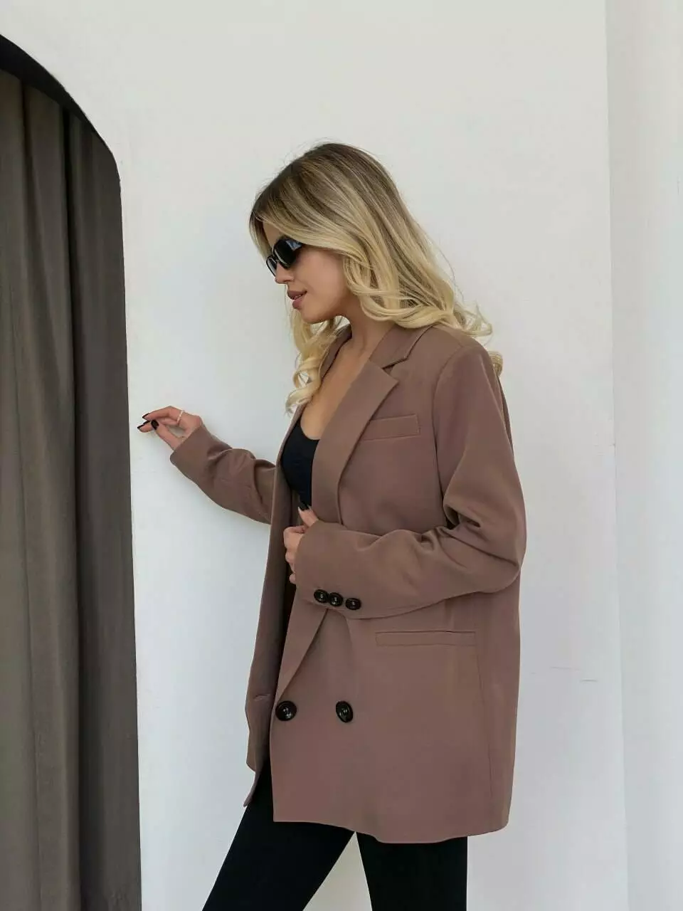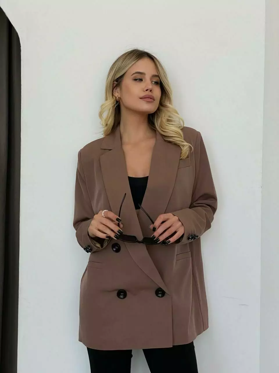 Стильний піджак «з чоловічого плеча», декорований ґудзиками, з 3 кишенями Застібається на 2 гудзики