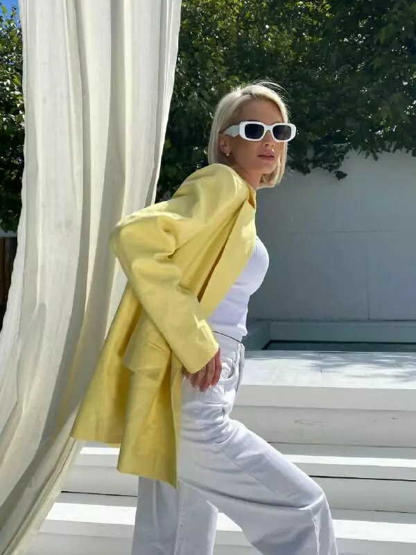 Трендовий піджак «з чоловічого плеча», з карманами, бавовняна підкладка, шліць по спинці.