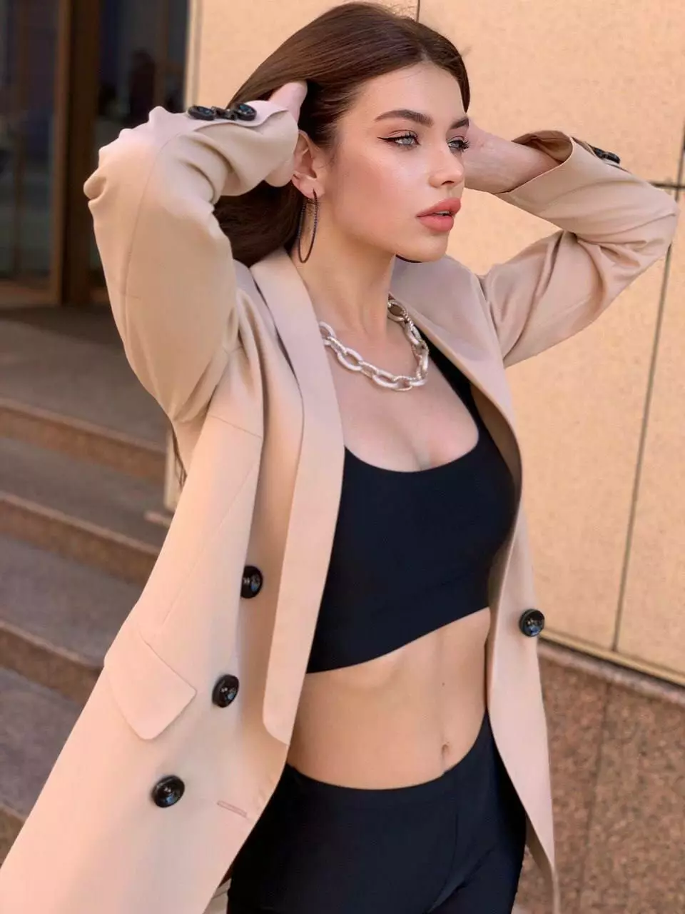 Стильний піджак з карманами, декорований ґудзиками Застібається на 2 пуговиці!