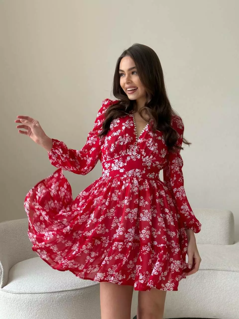 Плаття VIOLA колір квіти білі на червоному
