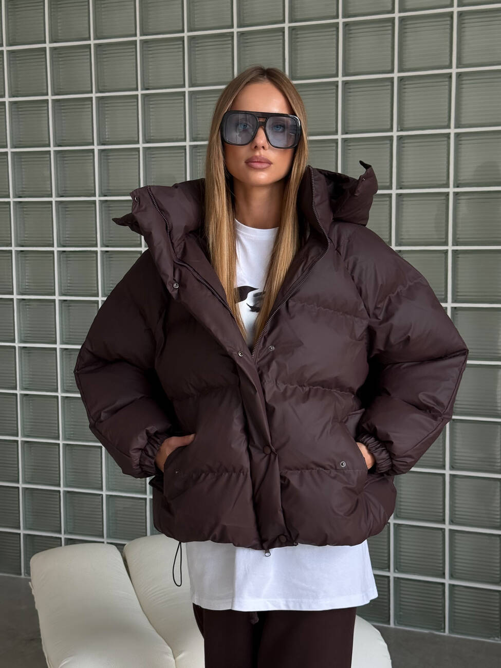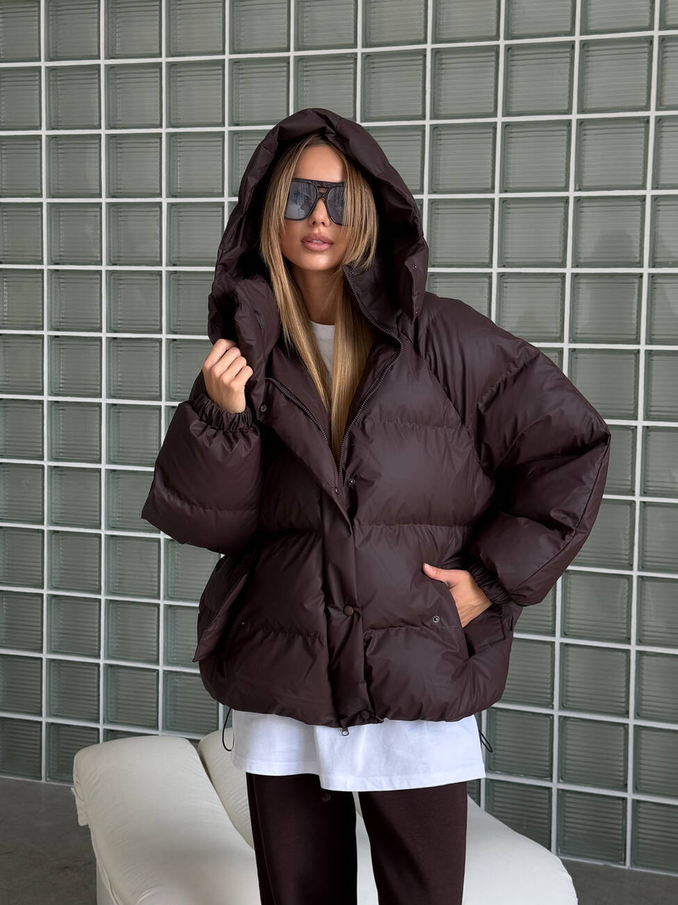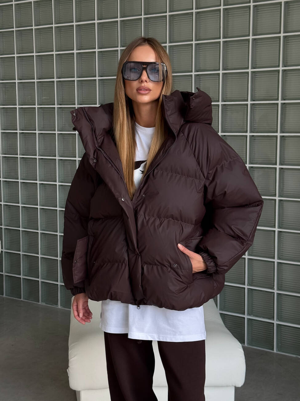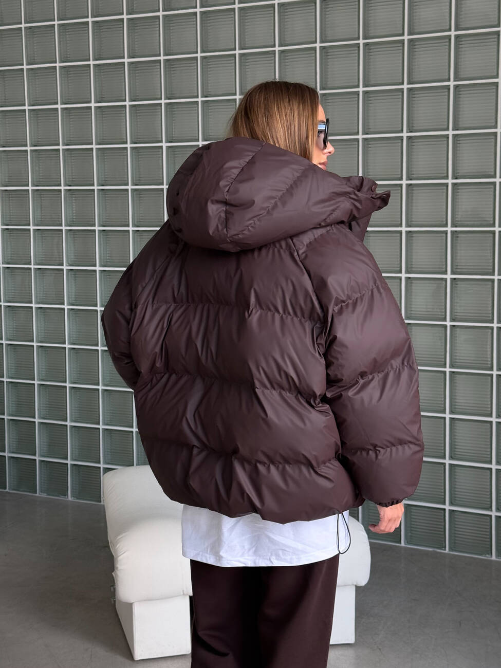 Зимовий пуховик, виконаний з плащівки на мембрані, що є непродувною і водонепроникаючою.