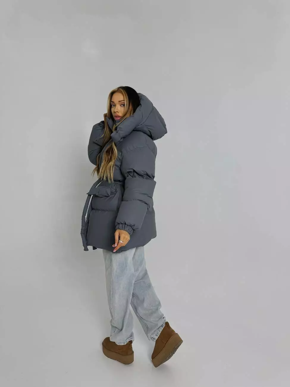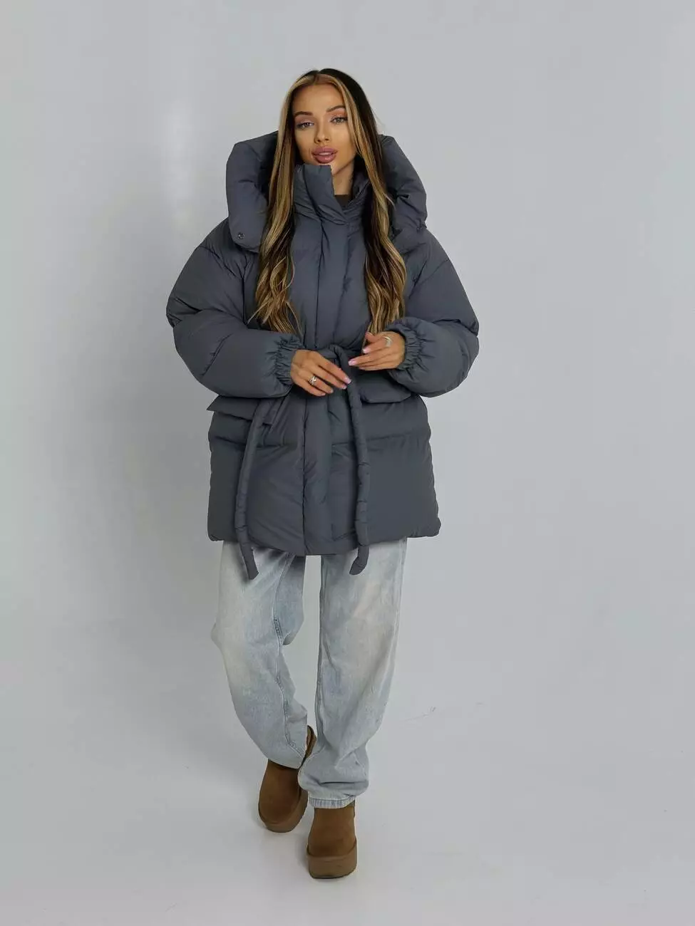 Зимовий ПУФЕР виконаний з плащівки , що є непродувною і водонепроникаючою, прямого крою В комплекті йде пояс ,достатньо обʼємна