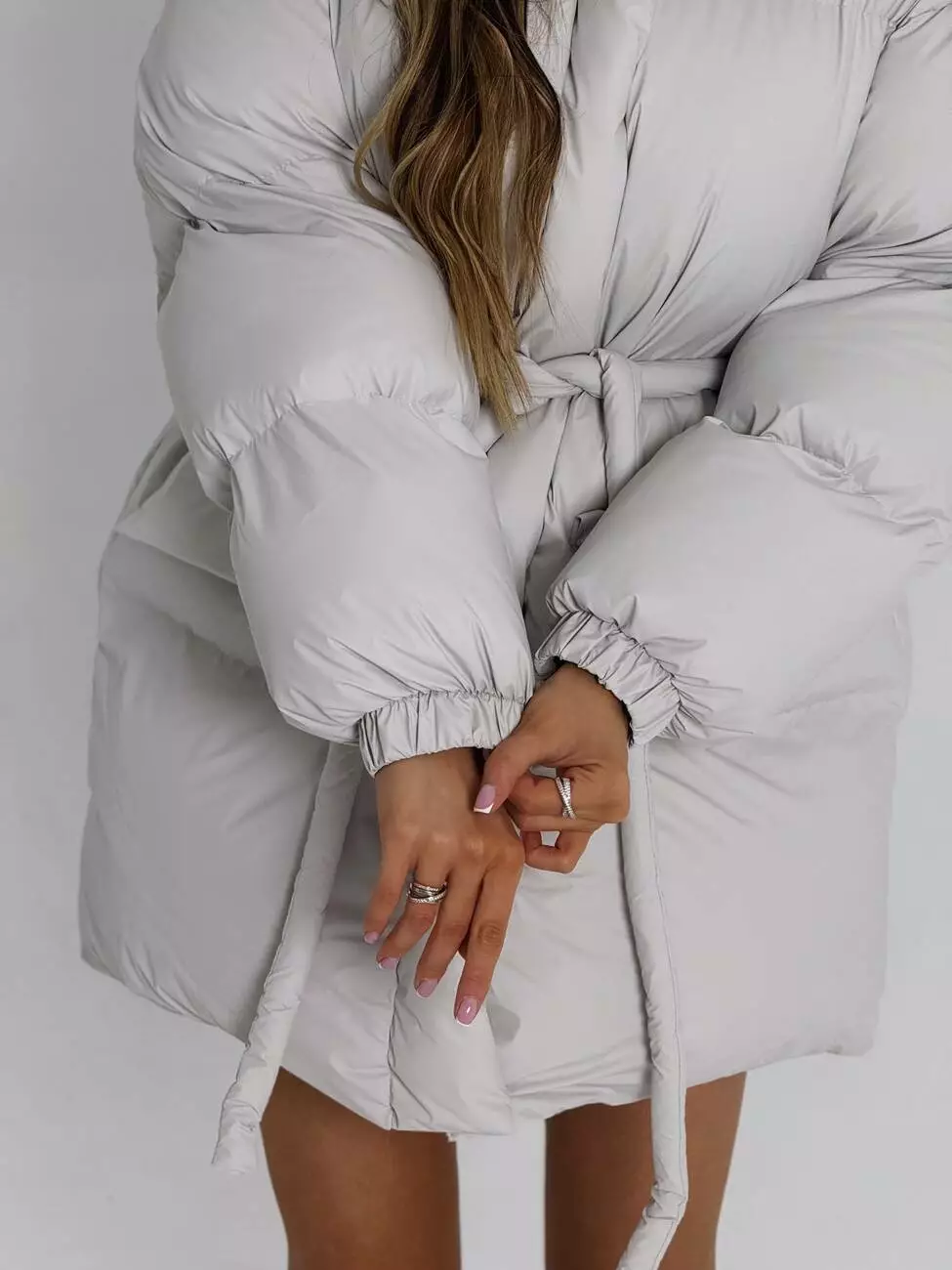 Зимовий ПУФЕР виконаний з плащівки , що є непродувною і водонепроникаючою, прямого крою В комплекті йде пояс ,достатньо обʼємна